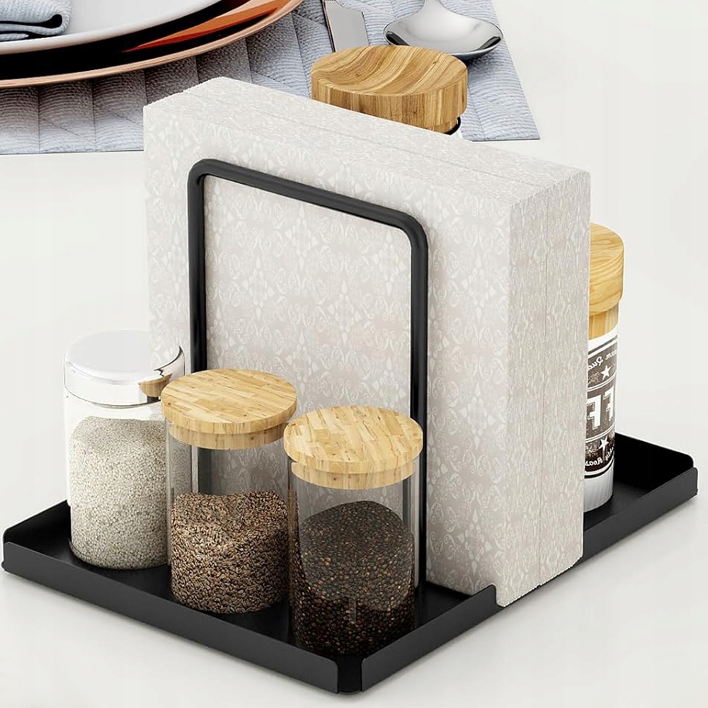 Эта черная салфетка будет работать не только на съедобных столах и кухонных столешницах, но и идеально подходит для офиса, заказывая почту и документы. Он очень удобен, идеально подходит для кемпинга и пикника, а также держит салфетки, специи и даже цветы или чашки.