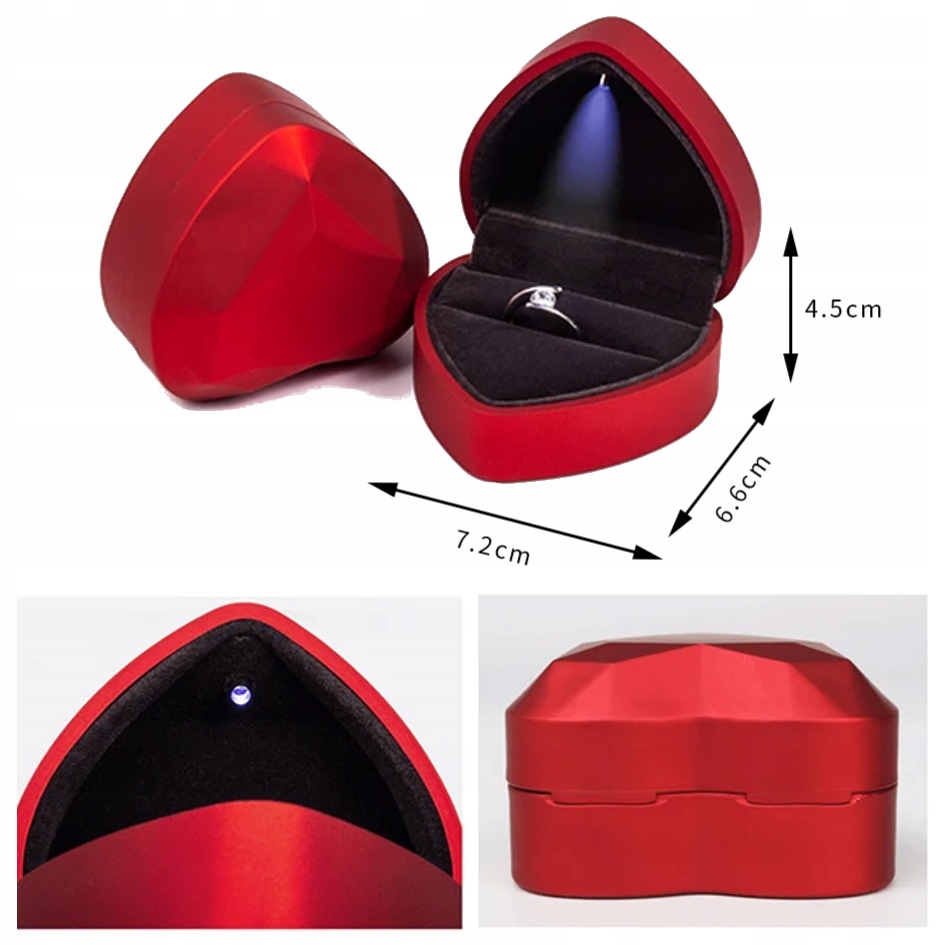 - содержит холодную светодиодную лампу, которая включается автоматически при открытии коробки и красиво освещает кольцо.