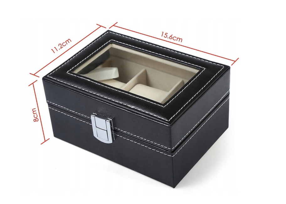 Элегантная коробка для часов имеет 3 отделения, в которых можно разместить не только часы, но и другие украшения. Кейс имеет элегантный черный цвет и белые швы, крышка футляра прозрачная. Внутренняя часть коробки выполнена из мягкого материала. Органайзер оснащен съемными подушечками, защищающими от царапин. Возможность их снятия означает, что вы также можете хранить там браслеты, ожерелья, кольца, серьги. Отсеки отделены друг от друга более высокими стенками, что защищает хранящиеся аксессуары. от нежелательного контакта, который может привести к разрушению.
