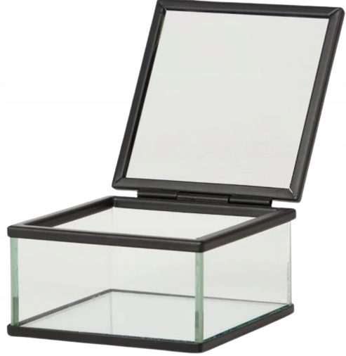 Благодаря прозрачному цвету коробка приобретает оптическое пространство и, прежде всего, очень высокую эстетику. Изделие полностью изготовлено из прозрачного стекла и черной металлической рамы. Створка открывается с помощью маленьких, почти незаметных петель.