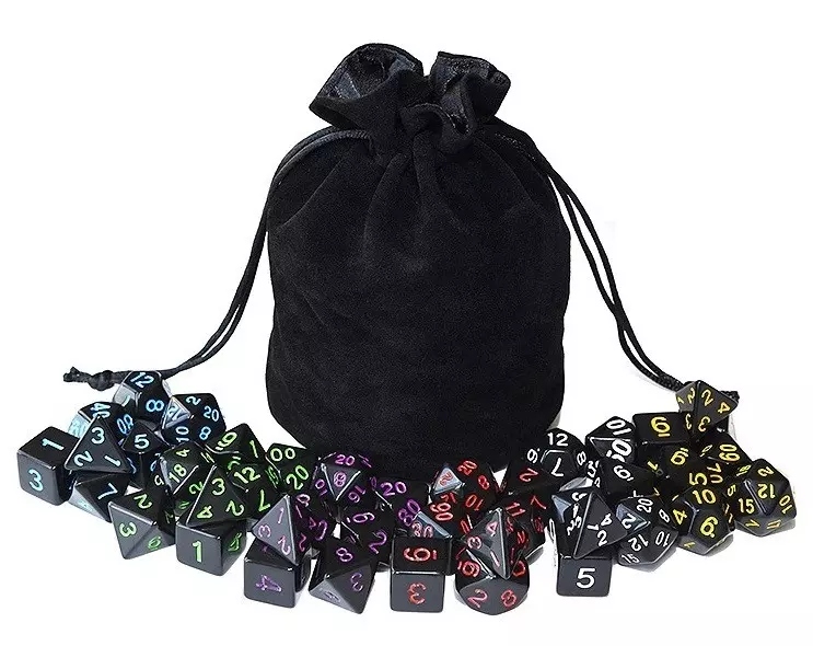- Стандартные наборы (7 шт), специальные наборы (9 шт дополнительные d10) и расширенные наборы (10 шт дополнительные d10, d24 и d30)