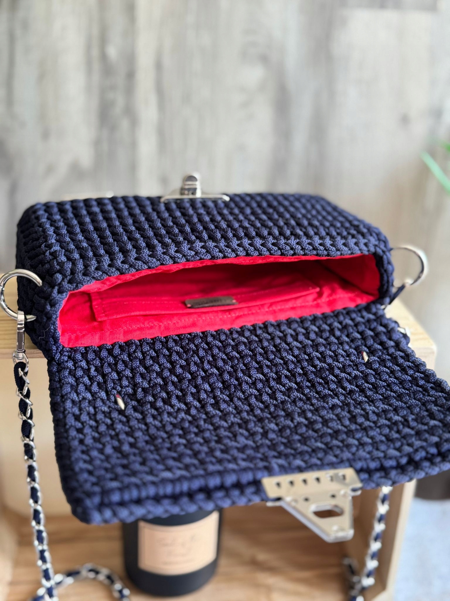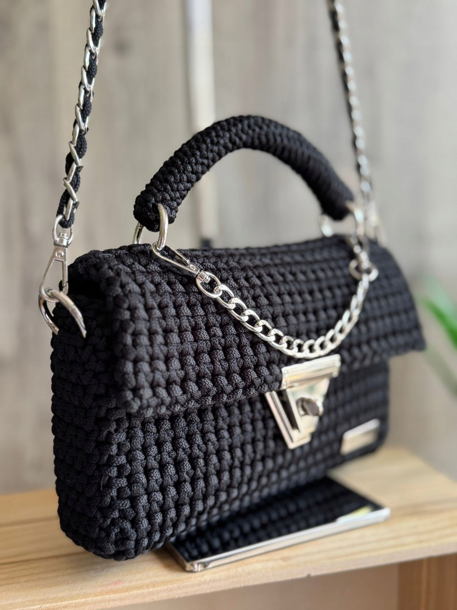 благодаря использованию точного стежка вязания крючком и исключительной навыки ремесленного изделия, сумка приобрела компактную форму и плотную структуру