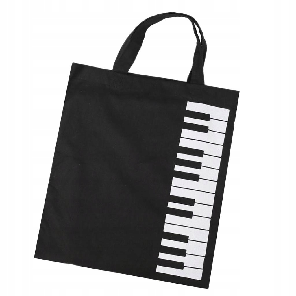 Музыкальная сумка с клавишами фортепиано из чистого хлопка, сумка через плечо, сумка для покупок, подарочная, черная