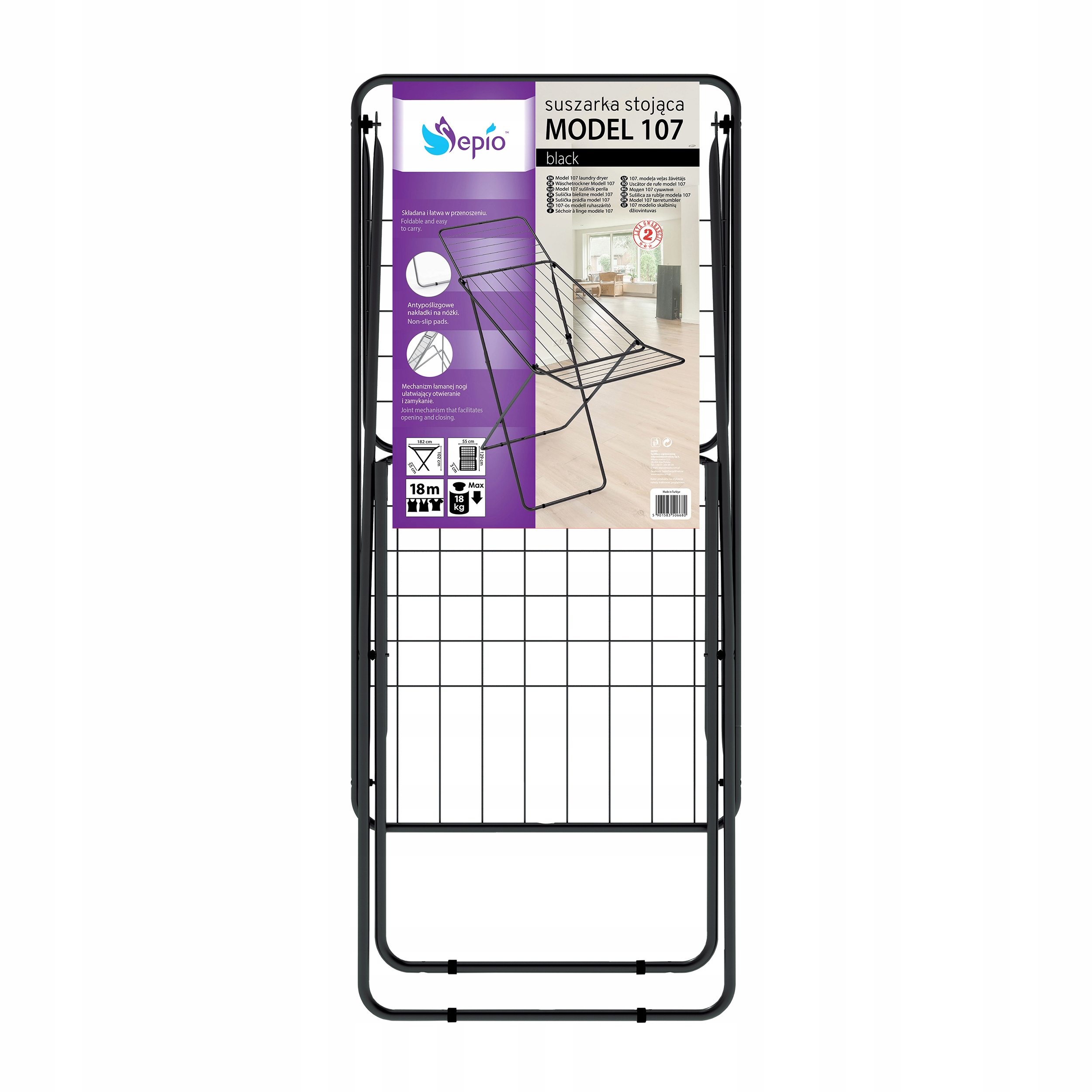 Оснащен складными крыльями и большим количеством строп, благодаря которым на него можно повесить большое количество белья. Большие крылья позволяют подвешивать более крупные предметы, в том числе: скатерти, постельное белье или покрывала.Сушилка также имеет заклепочные петли и нескользящие ножки, предотвращающие ее опрокидывание. Скрещенные ножки и крылья позволяют легко и удобно сложить сушилку, когда она не используется, она не займет много места и ее легко можно спрятать в шкафу или за дверью. Благодаря прочной конструкции сушилка остается устойчивой даже под воздействием большого веса и не складывается самостоятельно.Она изготовлена из прочной нержавеющей стали с порошковым покрытием, устойчивой к УФ-лучам и другим внешним факторам, таким как влага, мороз и ветер. Его можно использовать как внутри, так и снаружи. Благодаря используемым материалам его чрезвычайно легко чистить, и он не является хорошей средой для размножения бактерий. Толстые металлические проволоки не прогибаются под воздействием нагрузки, а также предотвращают образование неприглядных складок на частях одежды. Это значительно сокращает процесс глажки и экономит ваше время и силы.