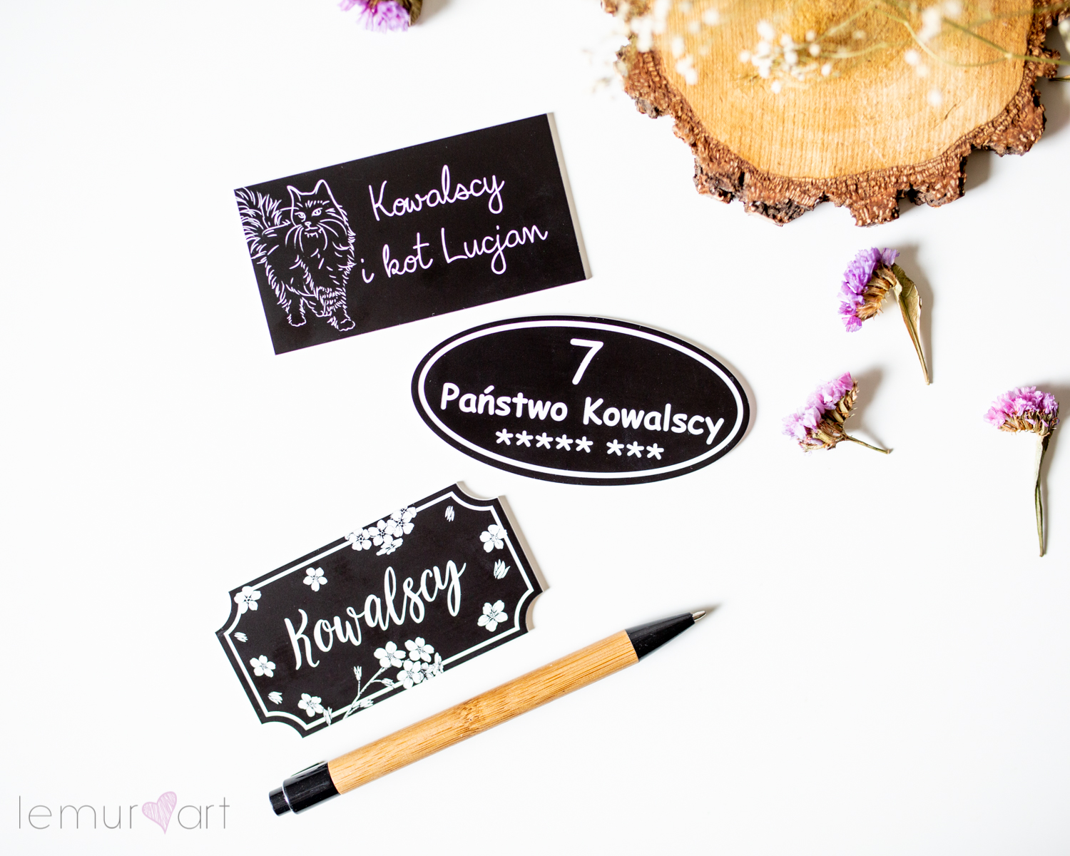 Шильды с гравировкой на двери, черные - 6 дизайнов на выбор!