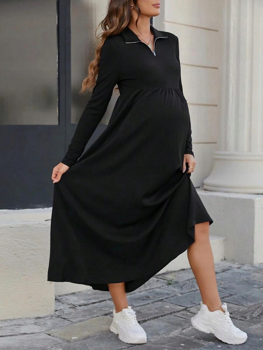 Черная беременность гладкое воздушное макси -платье с длинным рукавом Shein 40/42