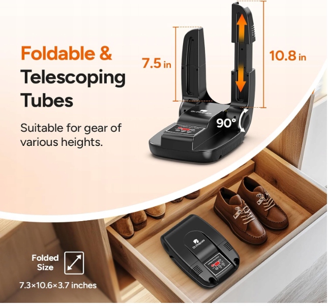 ✅✅ Универсальная сушилка: Телескопические трубы подходят для различных обуви и оборудования, включая спортивную обувь, обувь с пробками, оксфорды, перчатки и шляпы . Поддерживает здоровье ног и продлевает срок службы ценного оборудования.