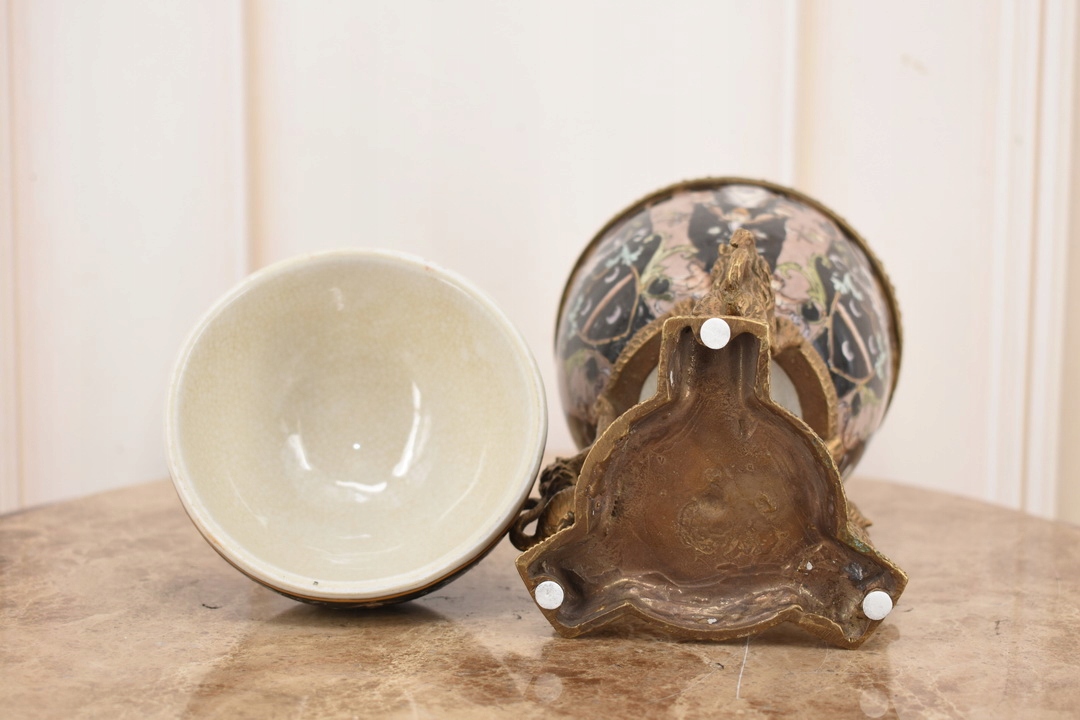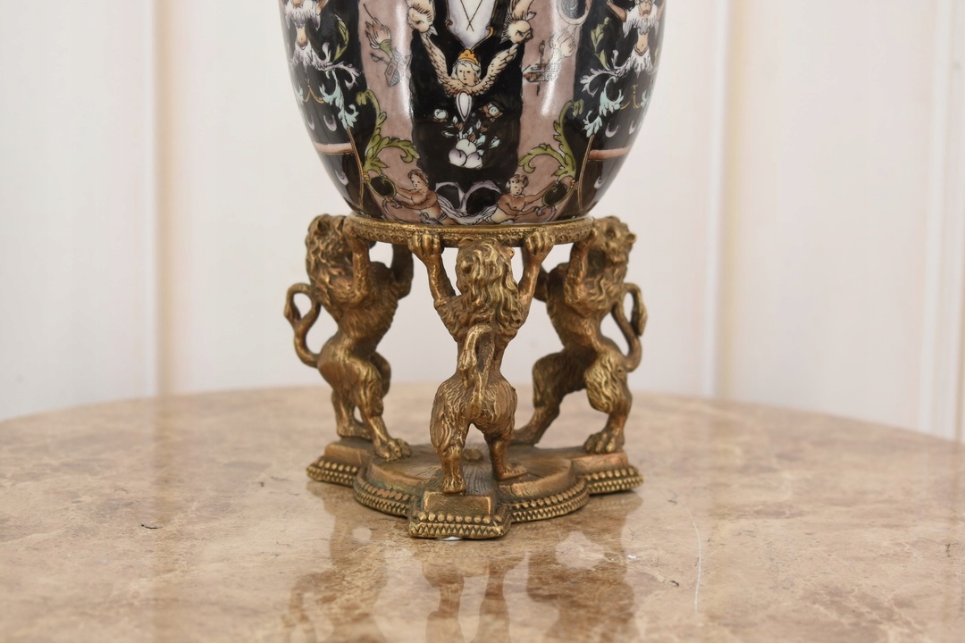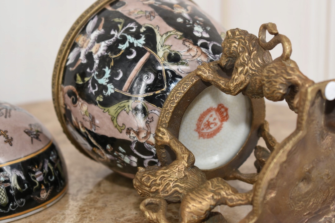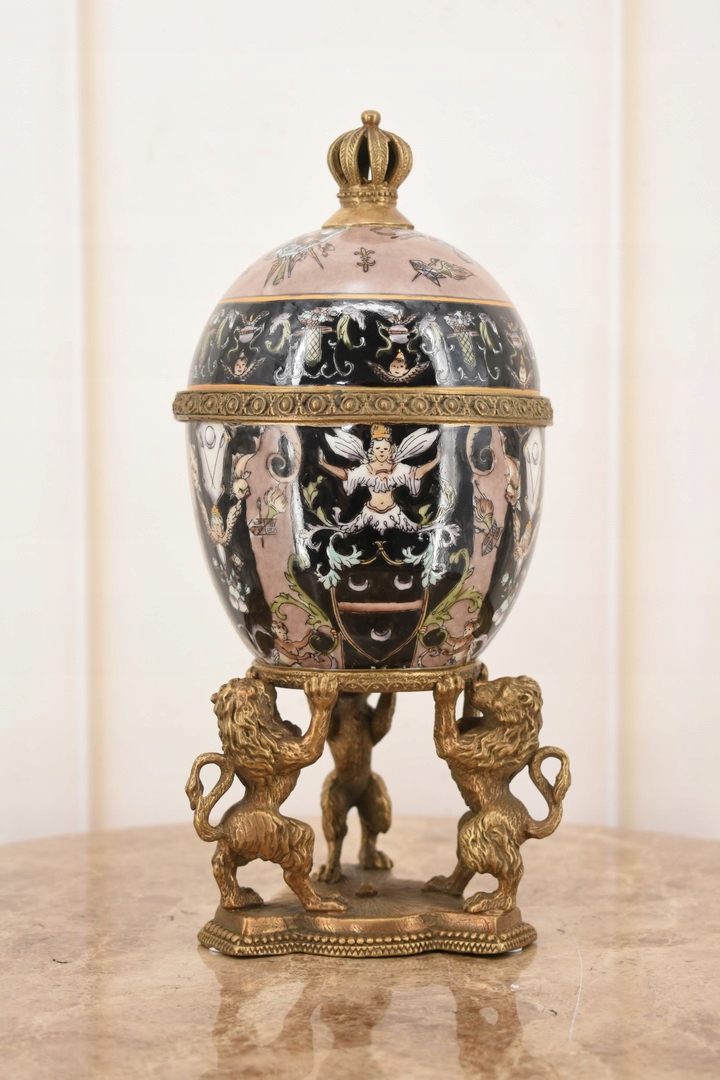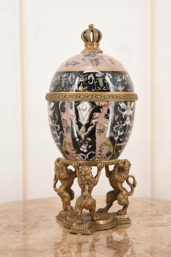 Черное фарфоровое яйцо, поддерживаемое львами - фарфор + коричневый - ящик для яиц