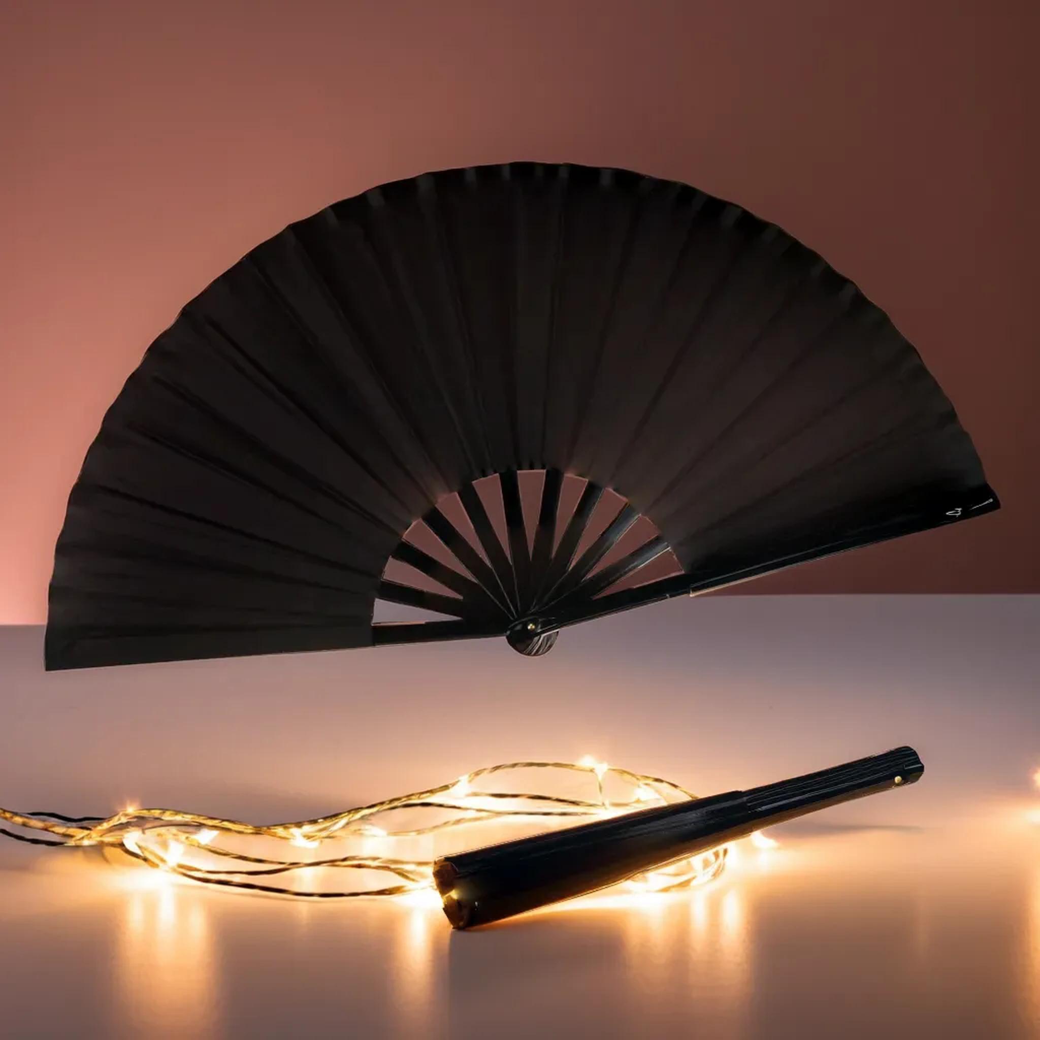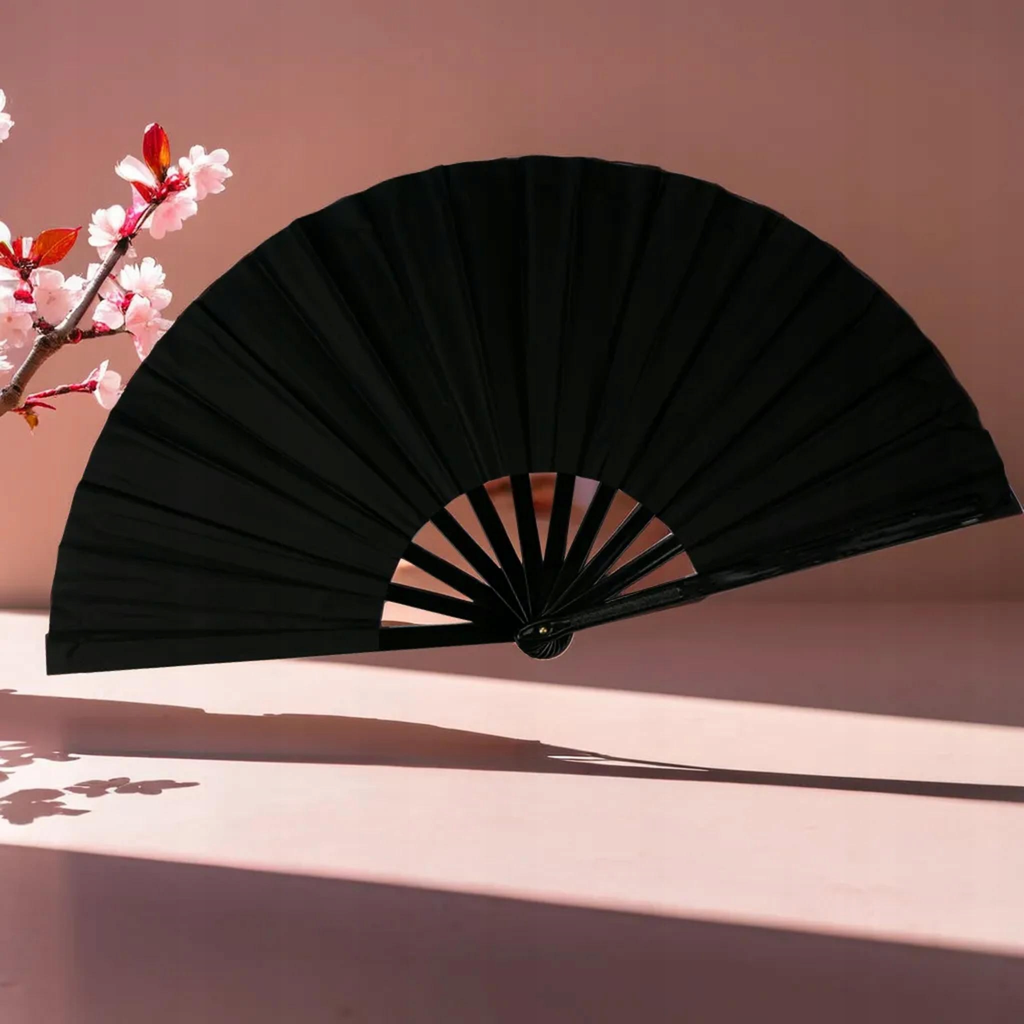 Чорне ручне віяло - стійке та велике для танців, спорту та тайцзи
