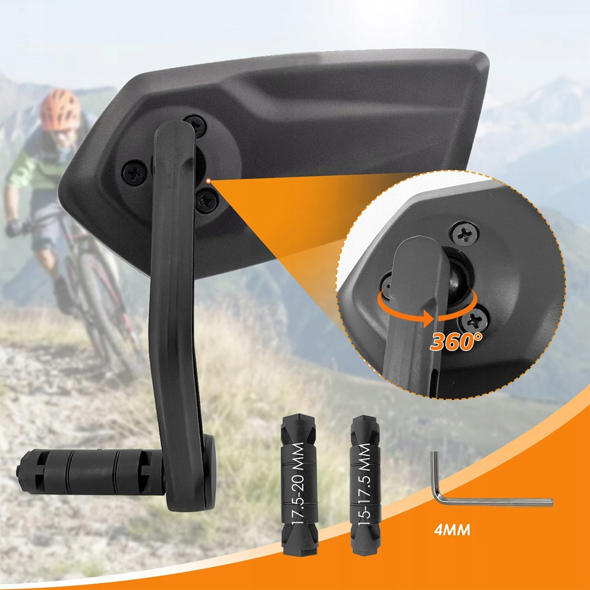 ▶ ️ 【360 ° Роторная структура и устойчивость к удару】 Велосипедное зеркало монтируется в конце велосипедного рулевого колеса, поэтому оно не будет покрыто плечами и плечами, обеспечивая полный обзор сзади. Универсальная конструкция шара обеспечивает вращение на 360 °. Специальный дизайн, который предотвращает нехватку стабильности даже на ухабистых дорогах.