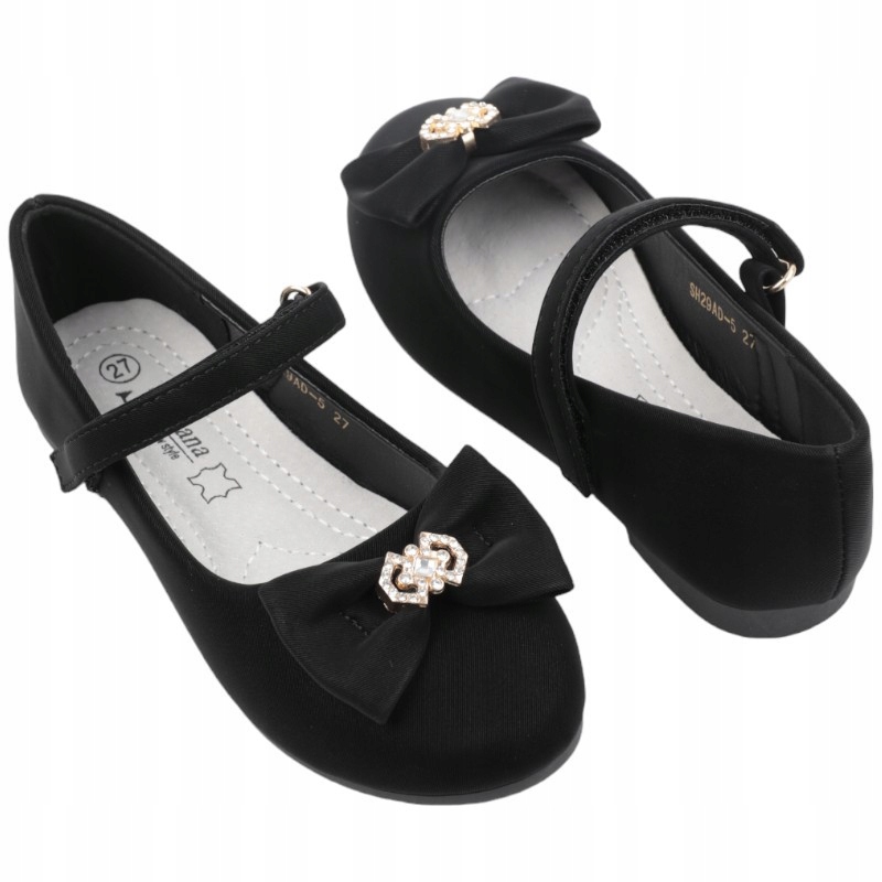 Балерины для девочек на плоской подошве, ремешок, поддерживающий ногу, застегивается на липучку, спереди декоративный бантик с цирконами. Изготовлен из материала. Они будут идеально смотреться на больших мероприятиях.