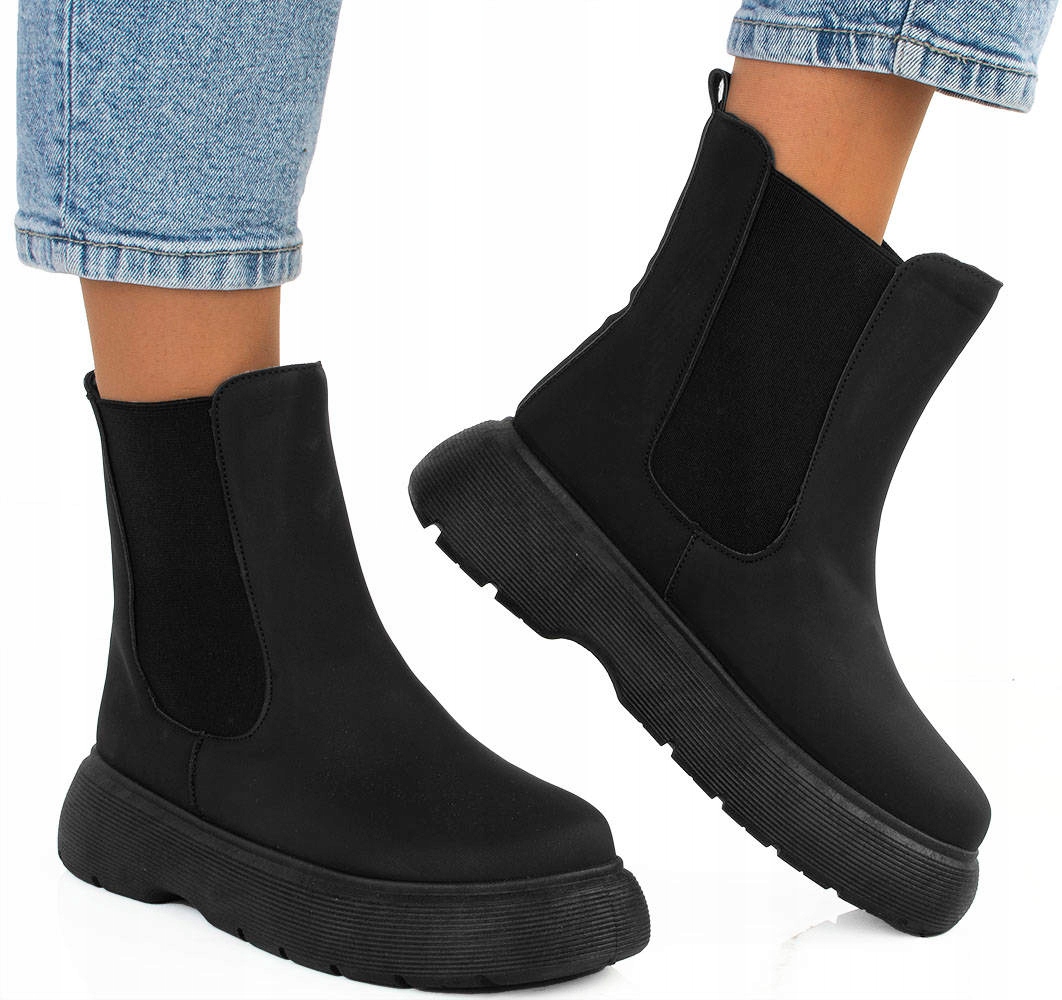 Черные ботинки на платформе изолированы 37