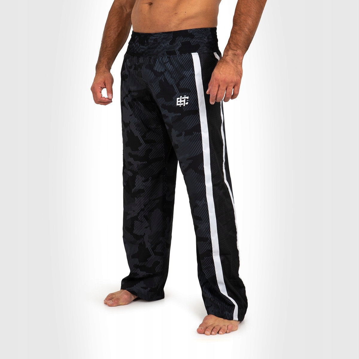 Мужские спортивные штаны для кикбоксинга классического кроя для этого единоборства. Они изготовлены из эластичной технической ткани, обеспечивающей свободу движений и отводящей влагу.
