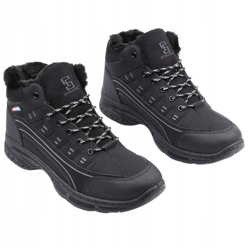 ЧЕРНЫЕ МУЖСКИЕ СНЕЖНЫЕ БОТИНКИ С УТЕПЛЕННОЙ СПОРТИВНОЙ ОБУВЬЮ ЗИМНИЕ РАБОЧИЕ БОТИНКИ