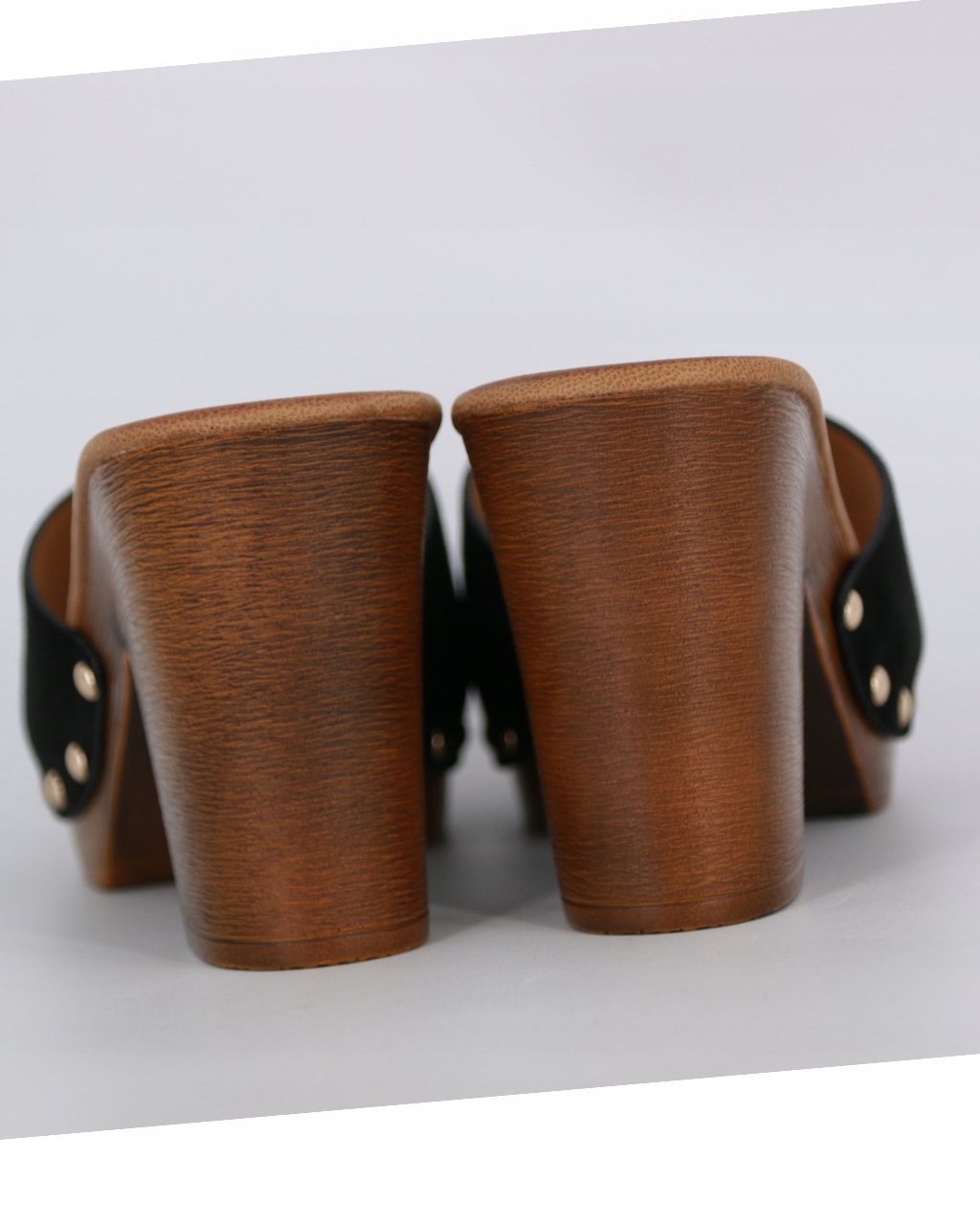 ЧЕРНЫЕ ЖЕНСКИЕ САБО НА КАБЛУКЕ, ЗАМШЕВЫЕ ТАПОЧКИ С КЛЕПКАМИ