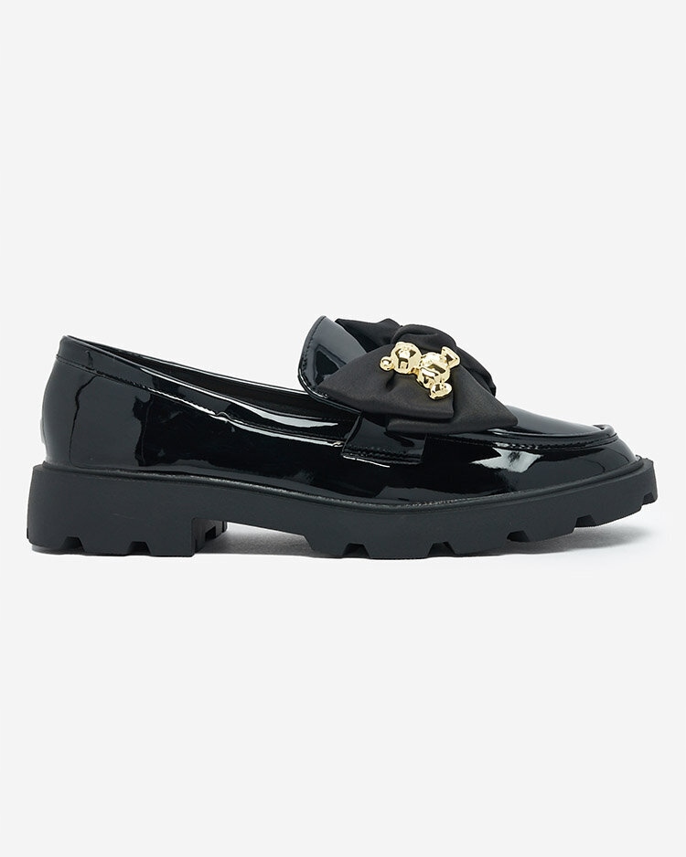 Красивые женские мокасины на толстой подошве. Модель повседневного стиля выполнена из экологической лакированной кожи. На носу украшение в виде бантика. Идеальная база для многих повседневных образов!