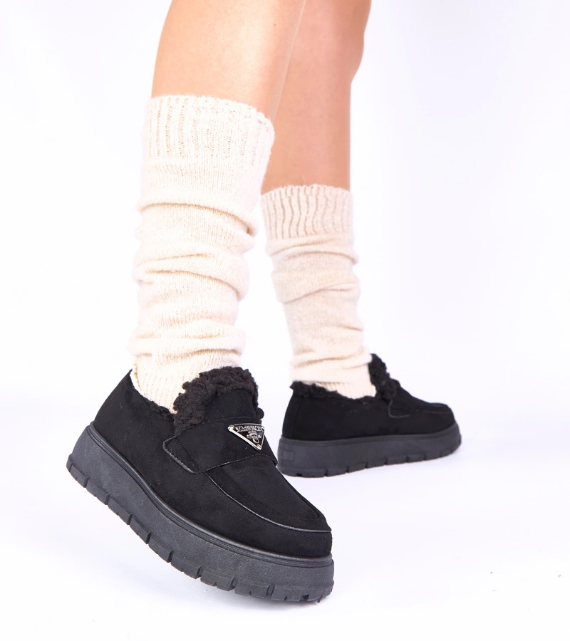 Чорні жіночі мокасини на платформі, утеплені хутром Kirby