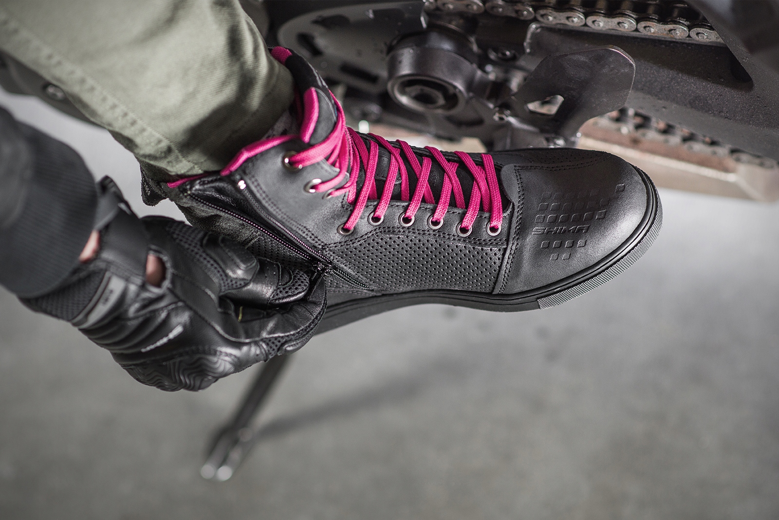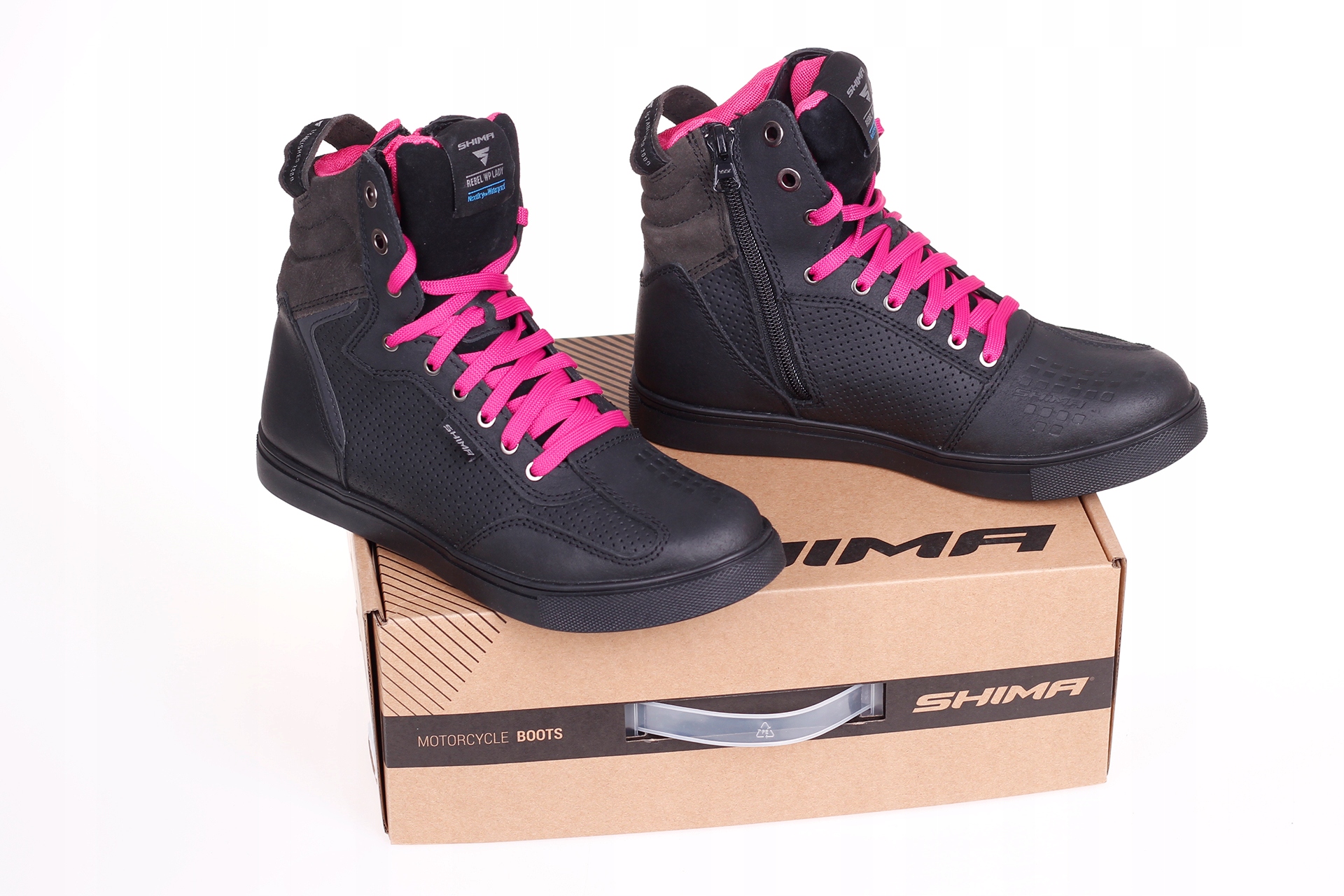 Ботинки Shima Rebel Lady — это городские мотоциклетные ботинки женского кроя, которые помимо безопасности защищают пользователя еще и от дождя благодаря водонепроницаемой мембране. б>. Изготовленный из натуральной кожи, он обеспечивает защиту от потертостей, а перфорированные панели улучшают вентиляцию, несмотря на мембрану. Усиление обуви в области пятки, пальцев и голеностопного сустава ударопоглотителем ArmorPlus обеспечивает безопасность, подтвержденную сертификатом. Боковая молния с ремешком для удобного надевания — удобный аксессуар, который оценит каждый мотоциклист.