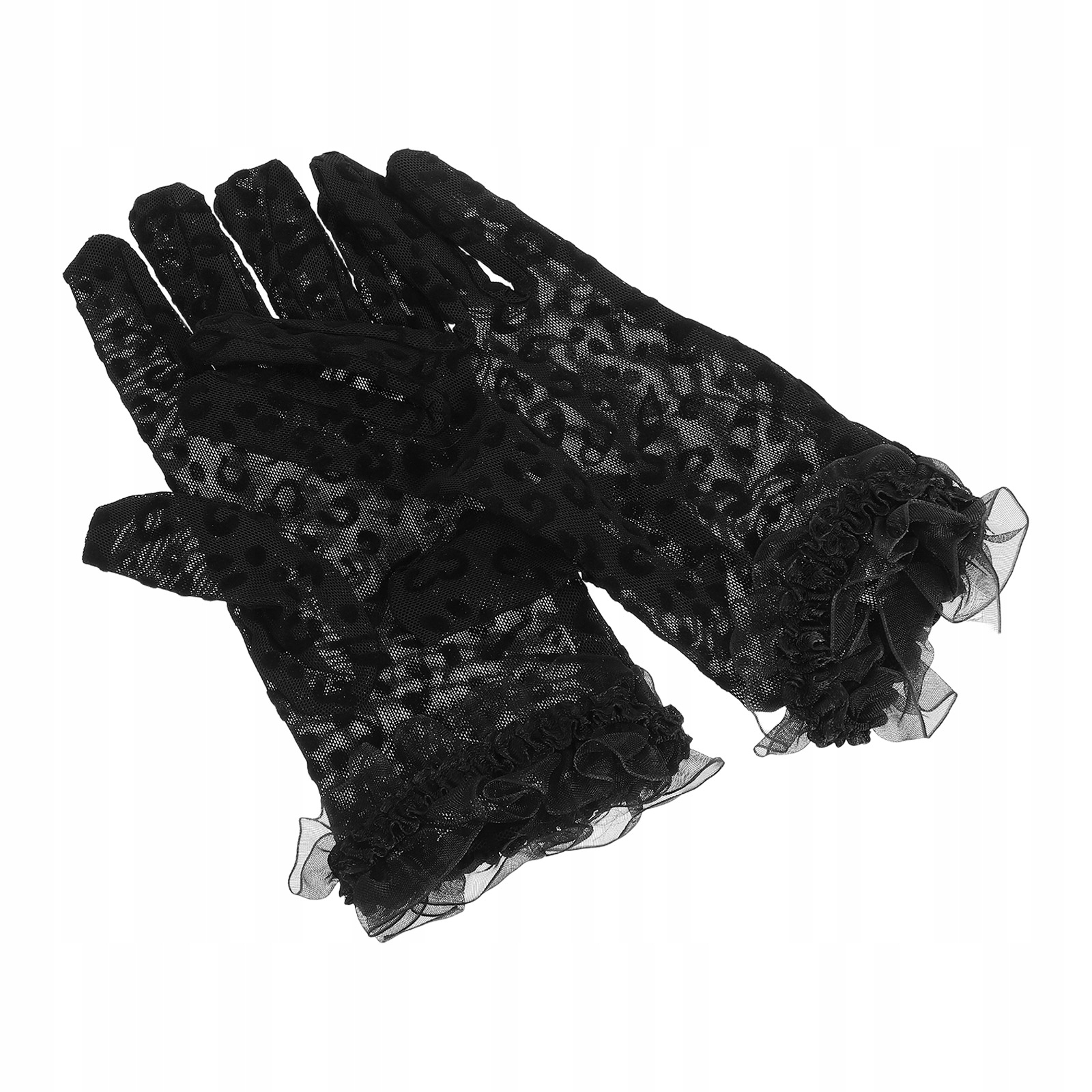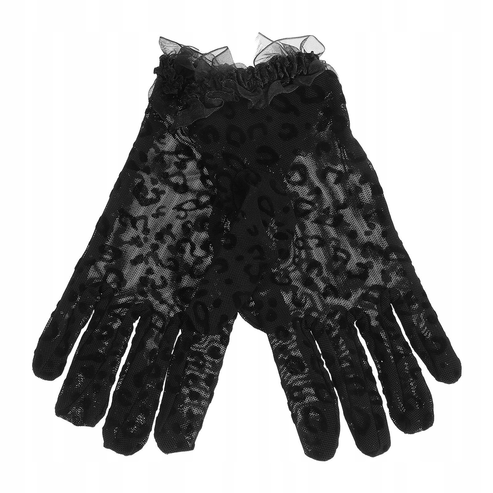 2ШТ ЧЕРНЫЕ ЖЕНСКИЕ ПЕРЧАТКИ ИЗ ТЮЛЯ С ЛЕОФРОВЫМ УЗОРОМ И ВЕЧЕРИНКАМИ