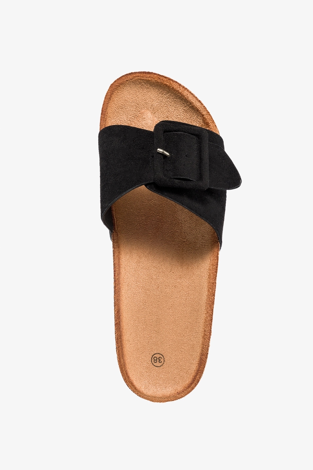 ЧЕРНЫЕ ЖЕНСКИЕ ТАПОЧКИ НА ПРОФИЛИРОВАННОЙ ПРОБКОВОЙ ПОДОШВЕ, ПЛОСКИЕ, размер 38