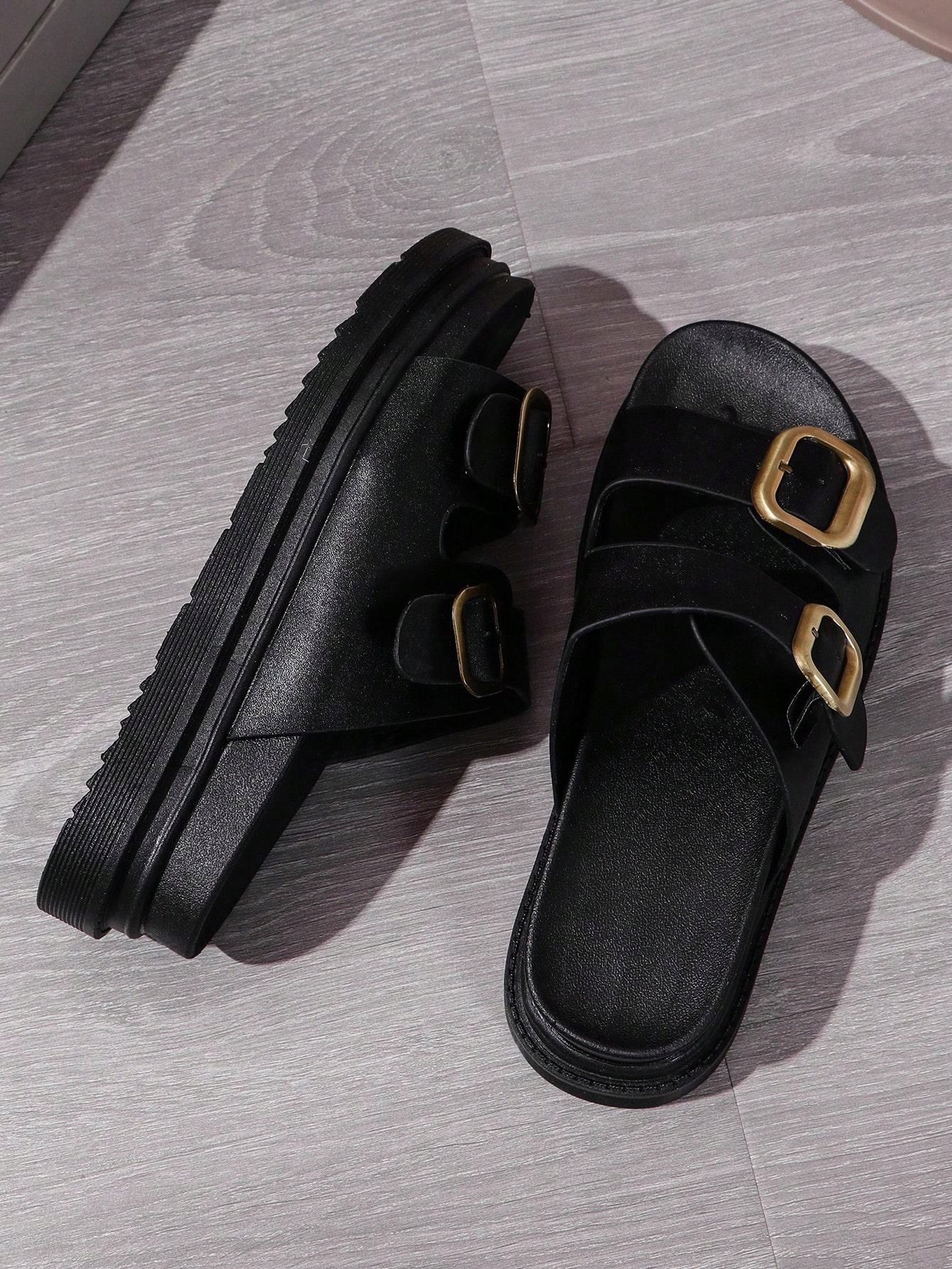 ЧЕРНЫЕ КЛАССИЧЕСКИЕ ТАПОЧКИ НА ПЛОСКОЙ КАБЛУКЕ ИЗ ЭКОКОЖИ SHEIN BUCKLE 43