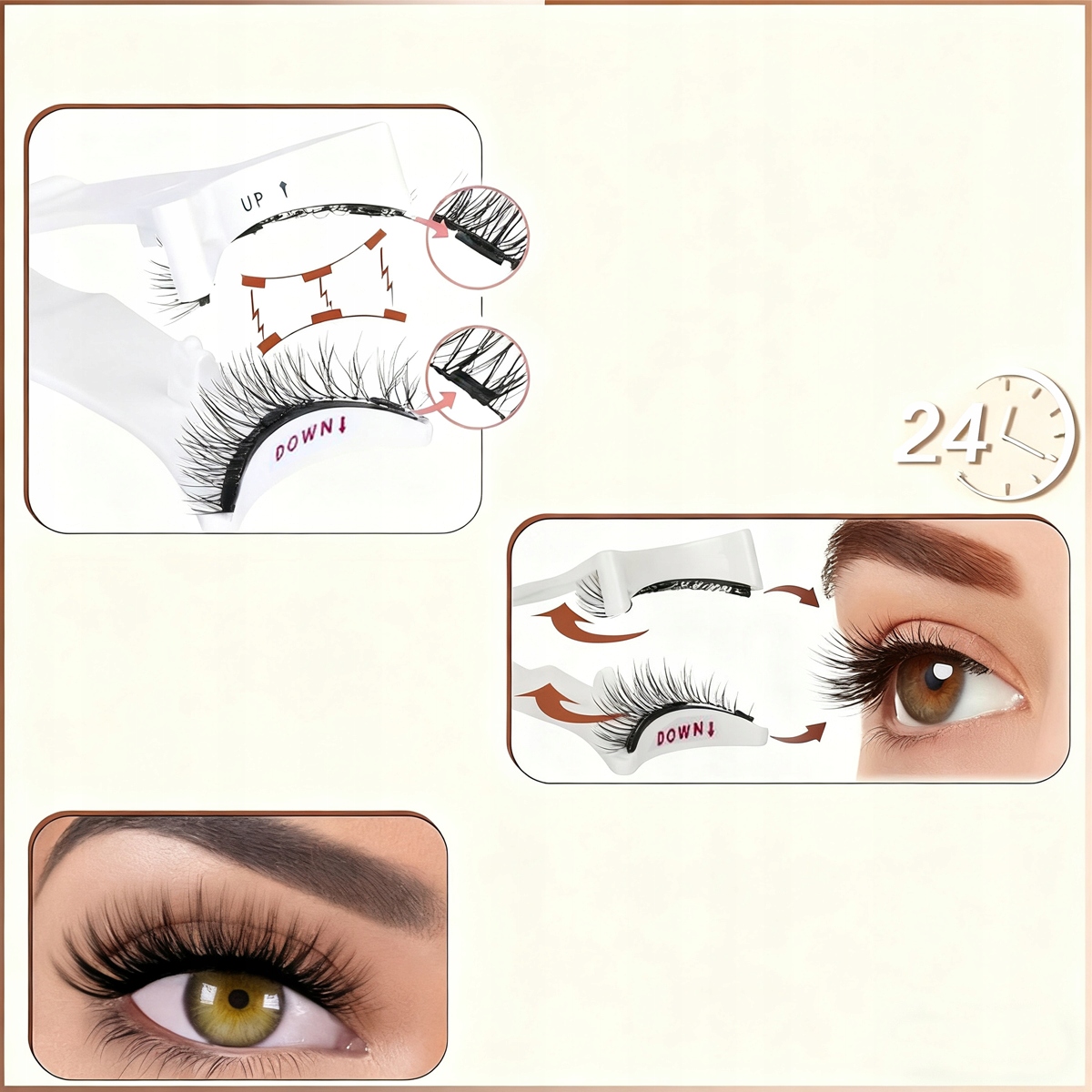 ✔️Сильная магнитная фиксация — 4 сильных магнитных точки обеспечивают стабильную фиксацию в течение дня. Ресницы можно подстричь и уложить по своему желанию благодаря мини-магнитным кончикам.