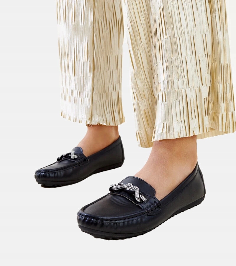 Черные мокасины, украшенные стразами Adiba, размер 38.