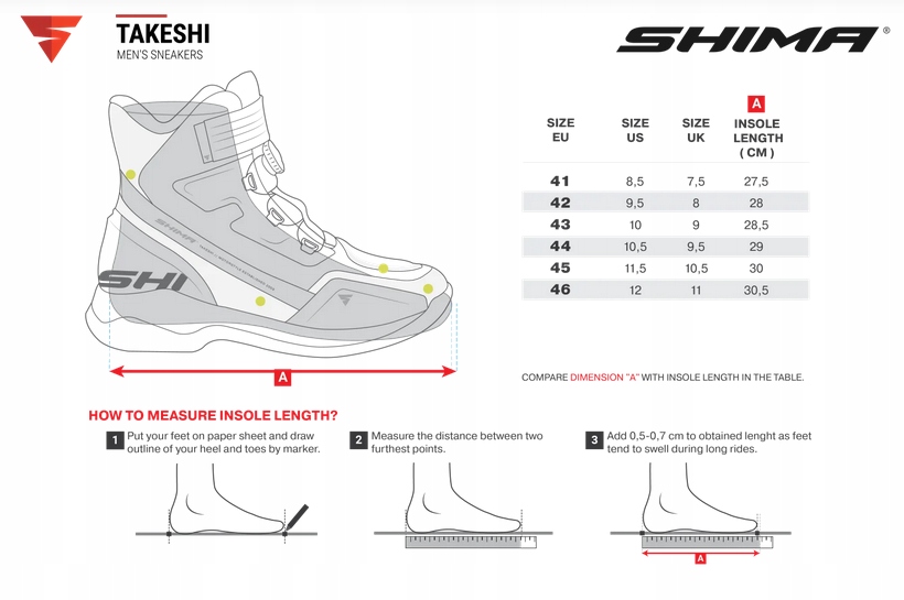 - Модель TAKESHI оснащена дышащим материалом, танкеткой, облегчающей поиск правильного положения ноги на подножке, и прорезиненной подушечкой для переключения передач.