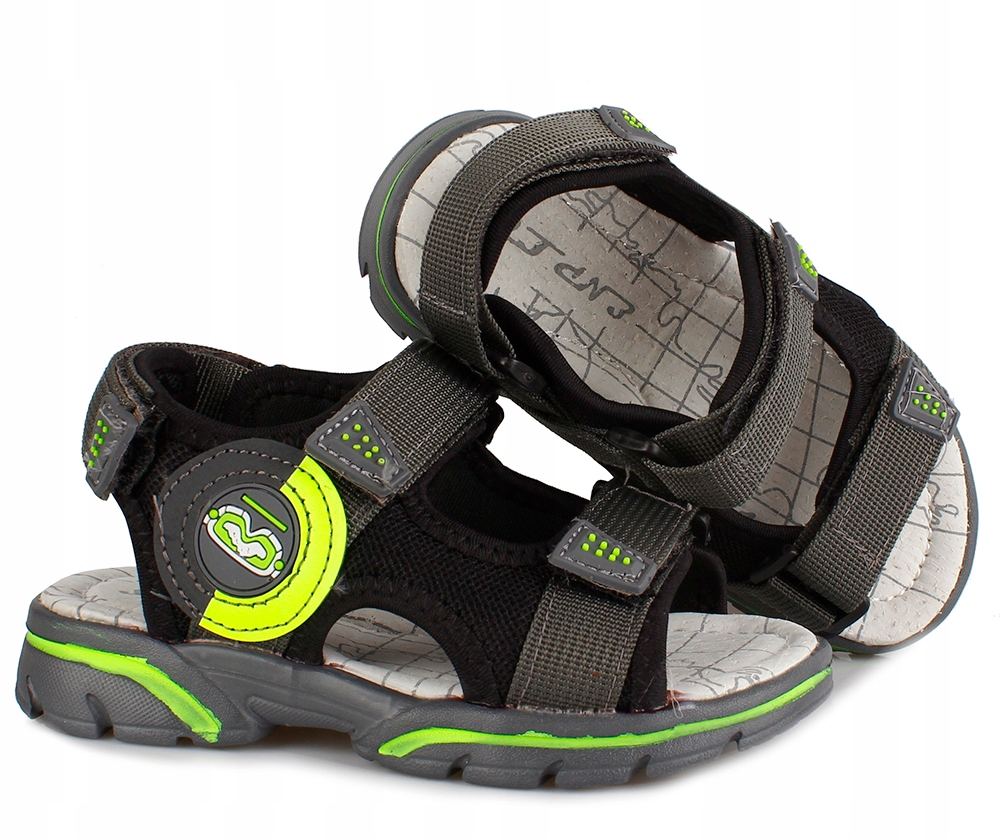 ЧОРНІ профільовані САНДАЛІЇ сірі зі шкіри на липучці 30