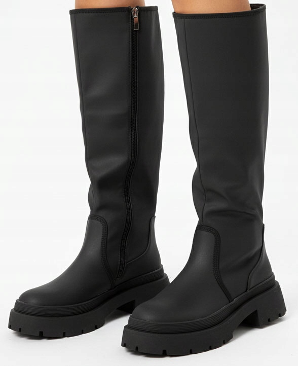 ЧЕРНЫЕ КОЖАНЫЕ БОТИНКИ НА МОЛНИИ НА ПЛАТФОРМЕ 38