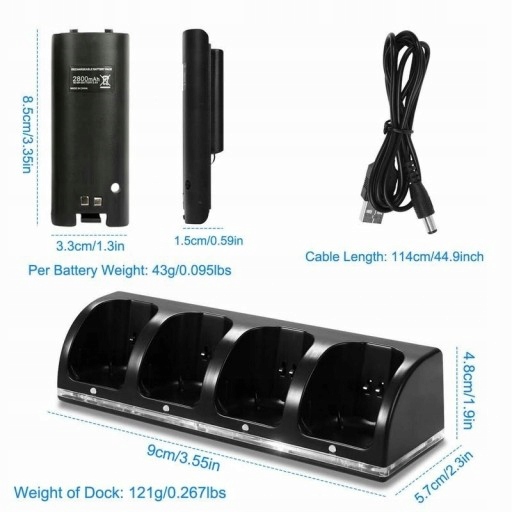 чорний 4 порти USB для зарядки 4 батареї для Wii
