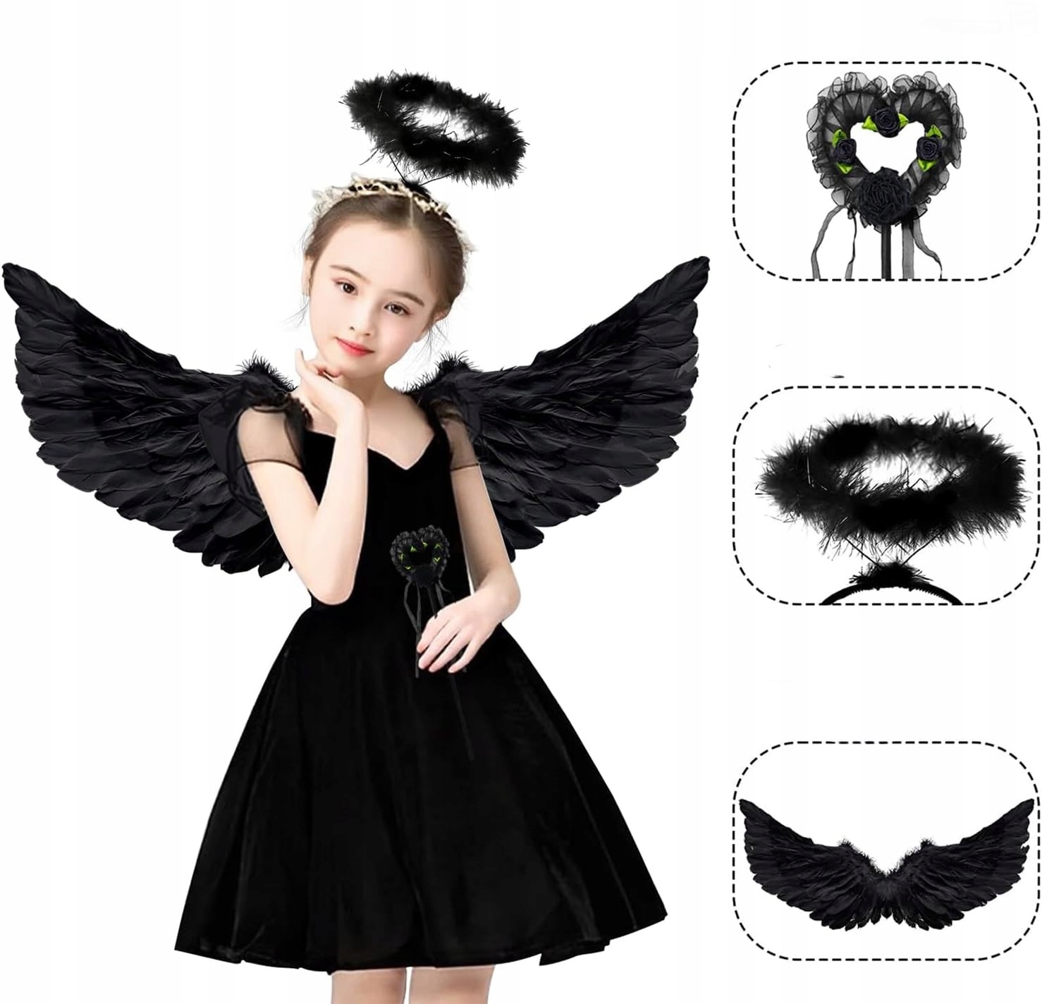 ➡ Создайте незабываемые моменты: Идеальный комплект для игры, сценических представлений и фотосессий - ваш ребенок расцвести в роли черного ангела.