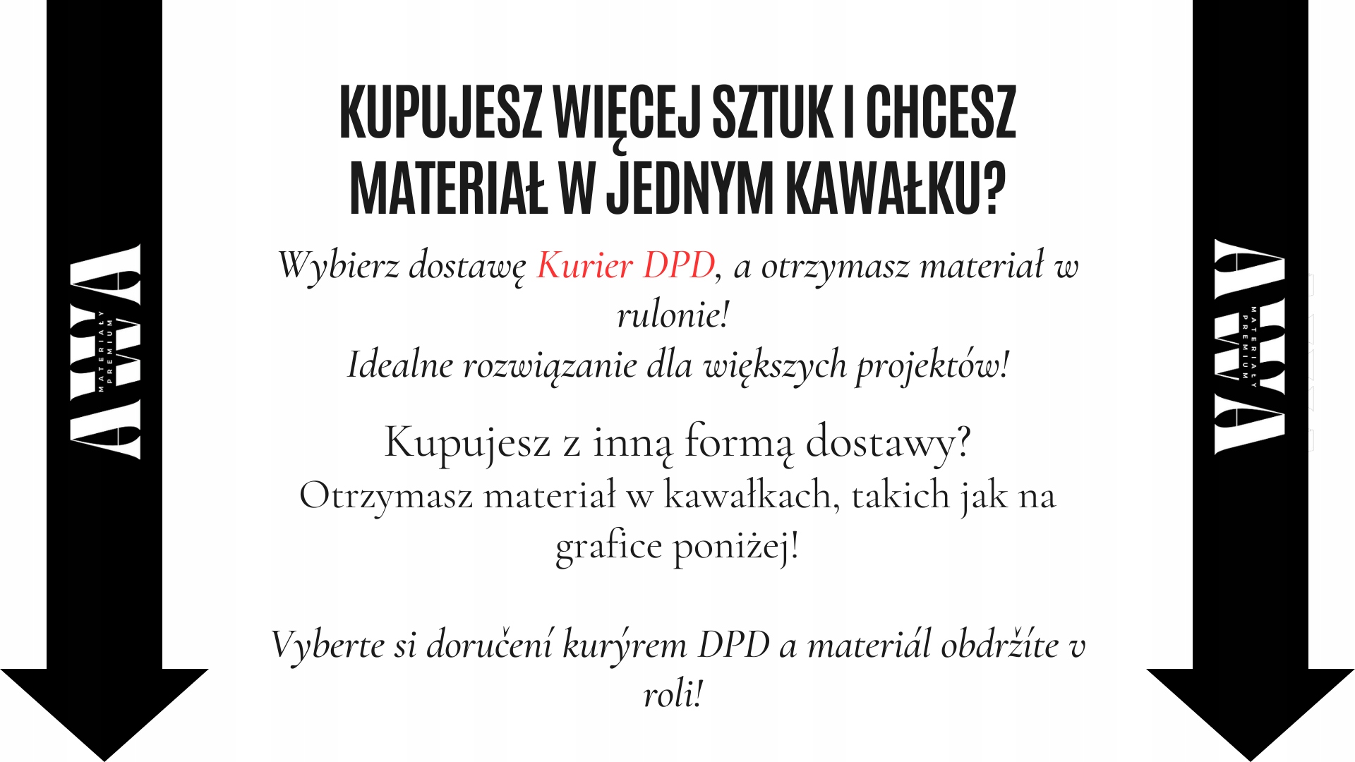 Чтобы обеспечить высочайшее качество поставляемого материала, Мы рекомендуем выбрать парьеров DPD . Благодаря этому материал будет отправлен в рулон , который устраняет риск складок и гарантирует, что он достигнет вас в идеальном состоянии.