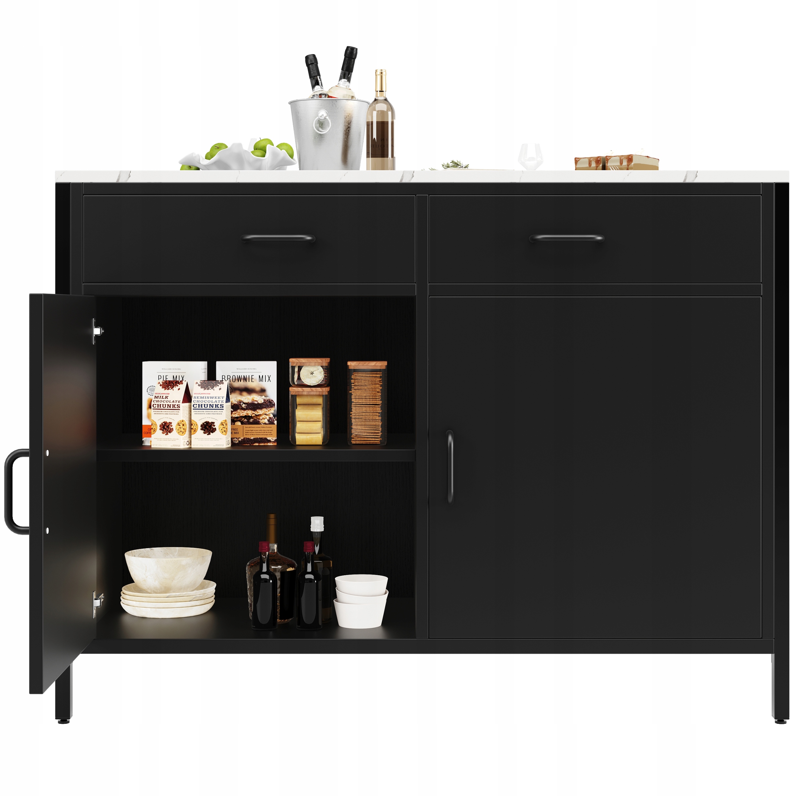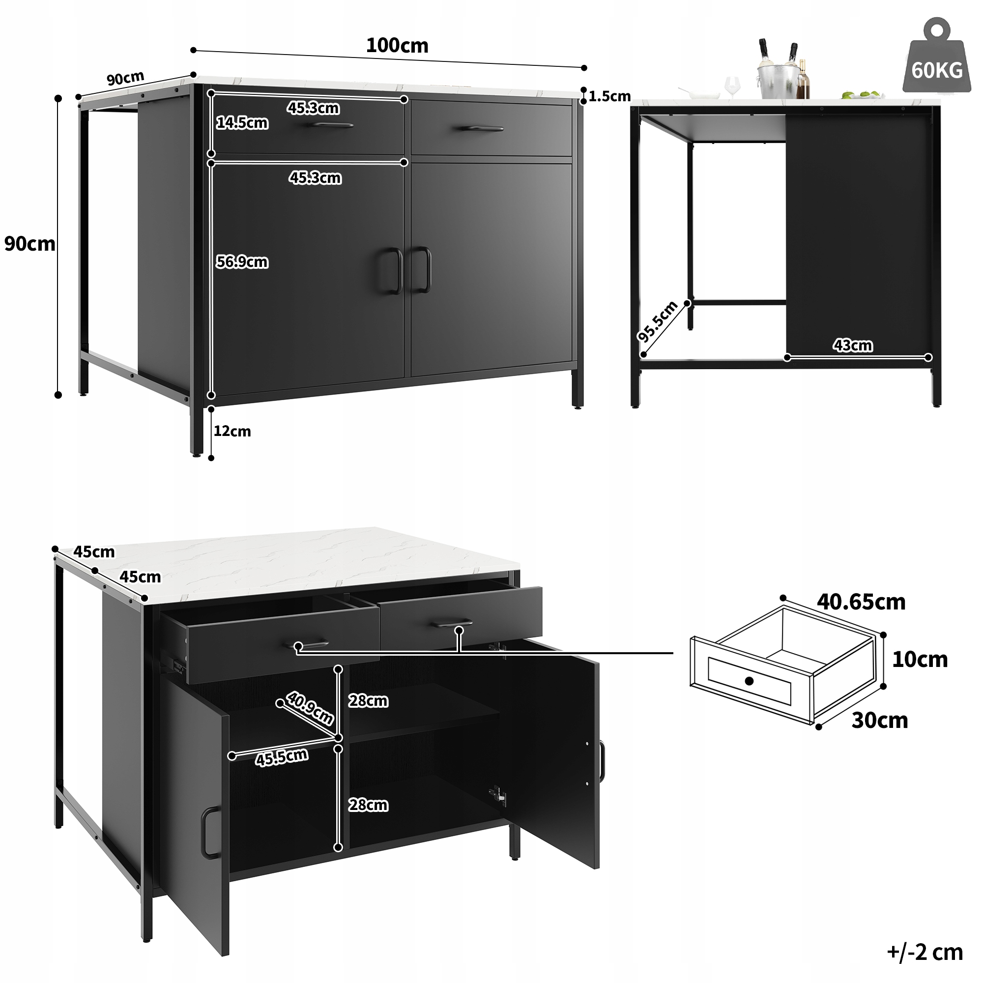 Многофункциональное хранение: имеет два ящика значительной глубины и ширины, что позволяет хранить большое количество вина и других предметов, удовлетворяя потребности в хранении, например, для семейных встреч. Также здесь предусмотрено достаточно места для большого количества посуды, кухонных принадлежностей и других вещей. Внутри шкафа, помимо ящиков, есть несколько полок, регулируемых на трех разных высотах.