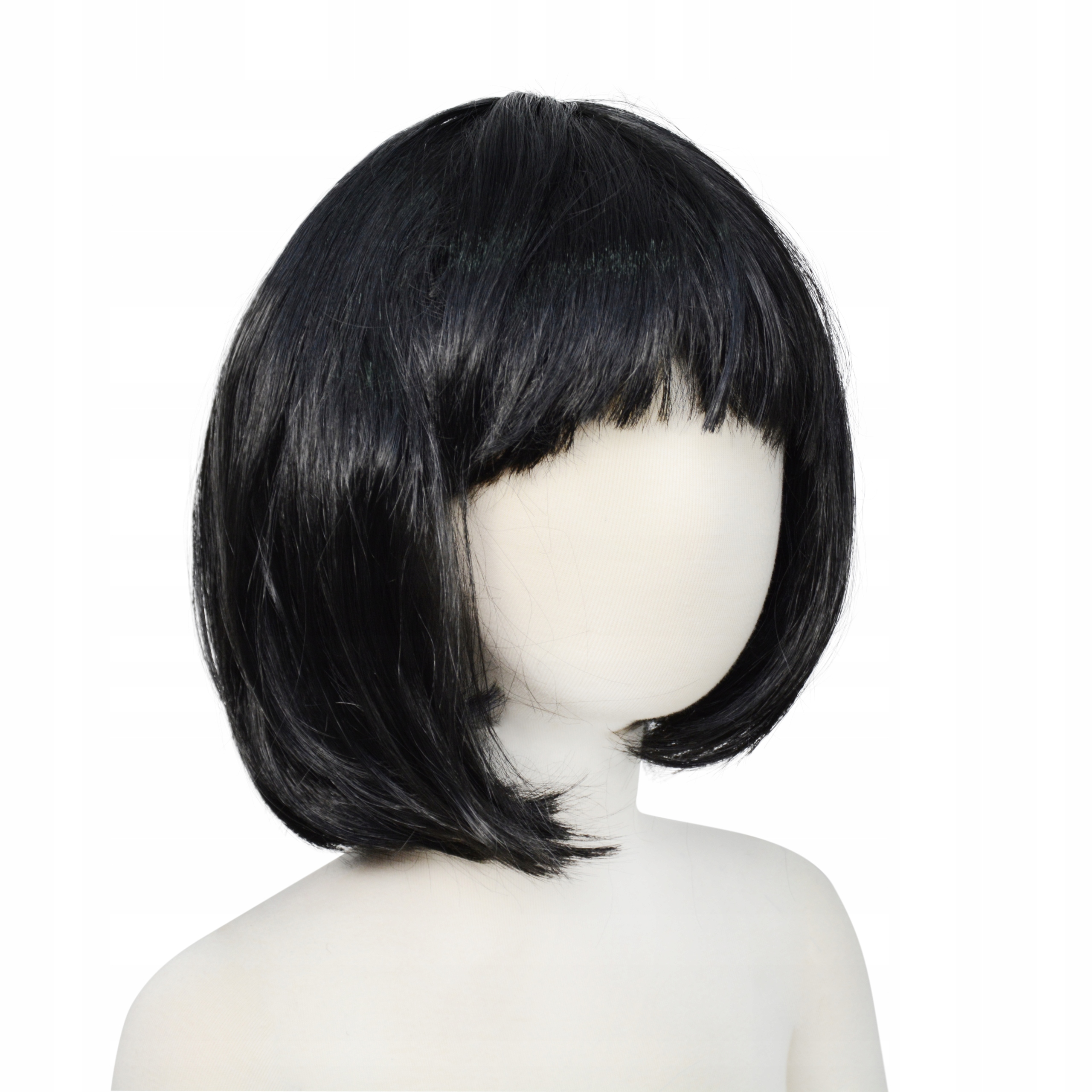 парик из синтетических волос в черном. Прическа в стиле «Боб» с рукой с челкой. Добавление стилизации, маскировка на карнавал, канун Нового года, Хэллоуин. Длина волос составляет около 25 см. Универсальный парик.