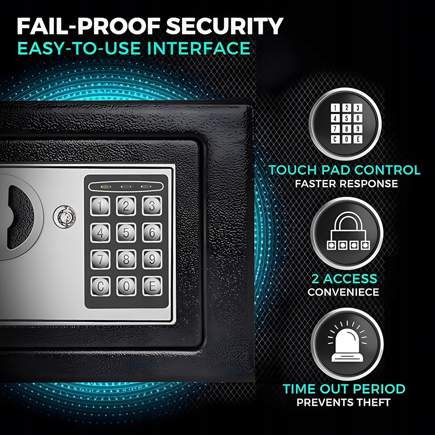 ✅ Безопасно и безопасно: сейф имеет армированную стальную стенку. Двойные стальные защитные замки в двери и коррозионное порошковое покрытие обеспечивает безопасность коробки безопасности Предварительно подготовленные монтажные отверстия и оборудование для монтажа в нижней части ящика Компании