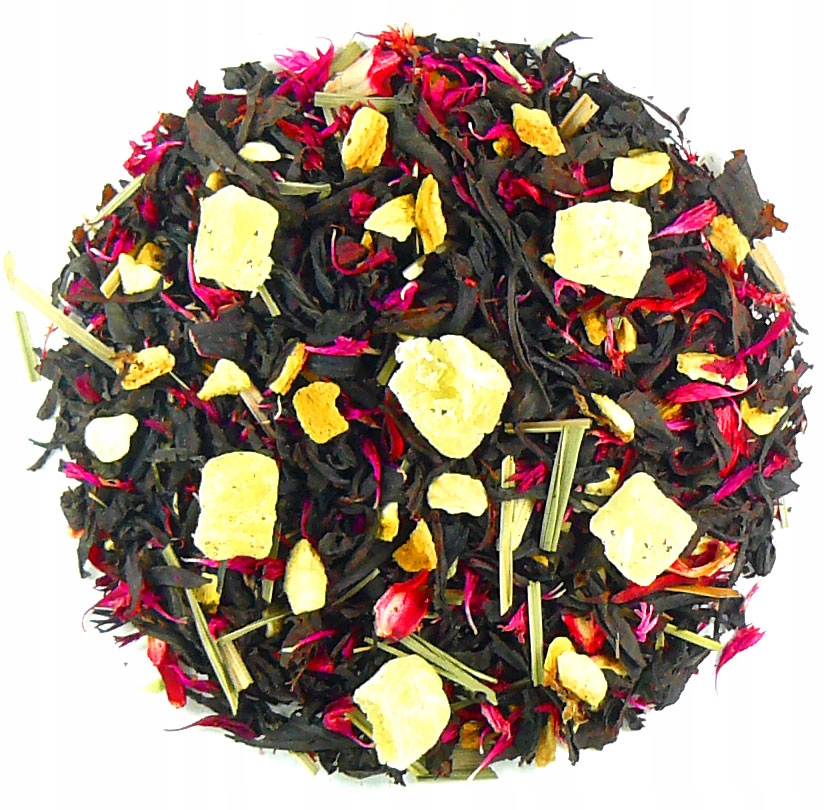 Композиция из кусочков ананаса, лемонграсса, цедры лимона и черного чая с легким освежающим ароматом.