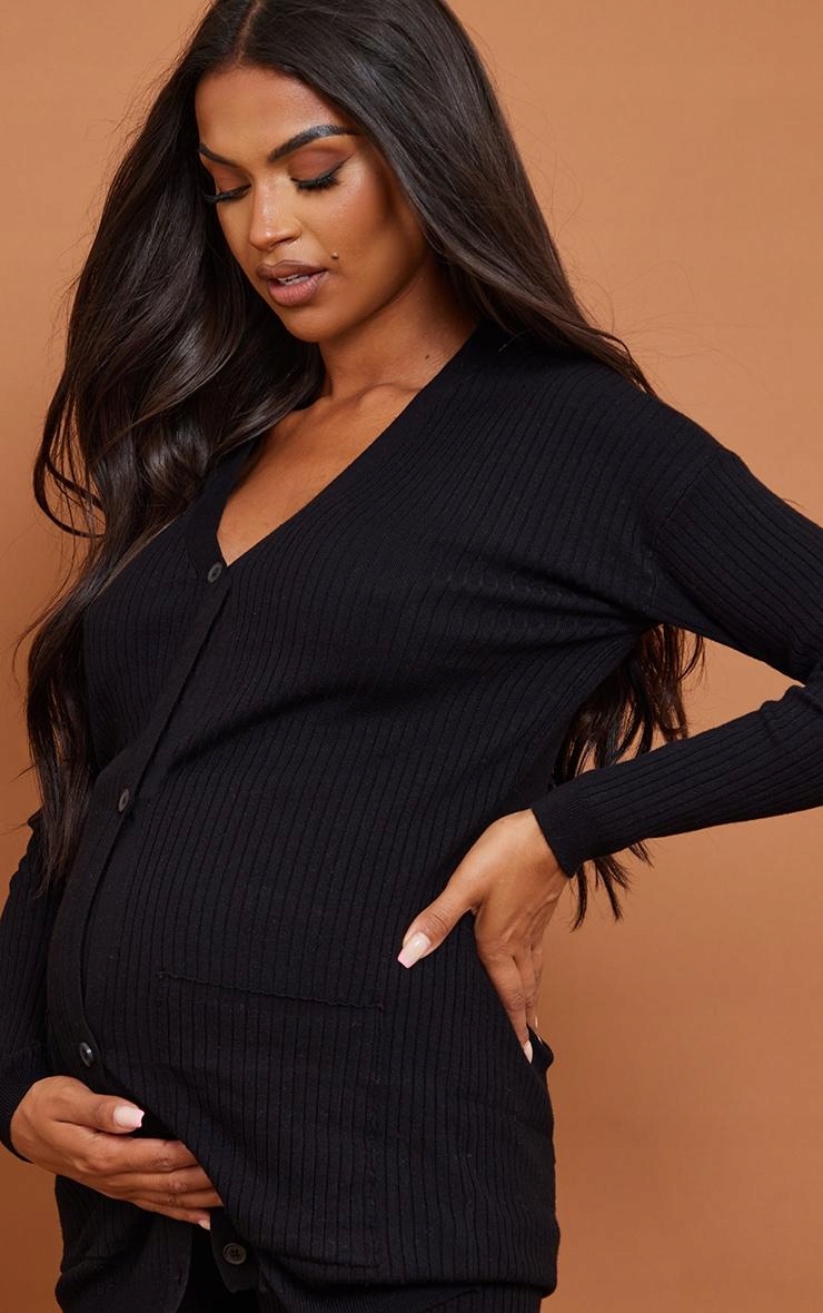 ЧЕРНЫЙ ДЖЕМПЕР ДЛЯ беременной в рубчик с длинными рукавами и пуговицами PRETTYLITTLETHING M