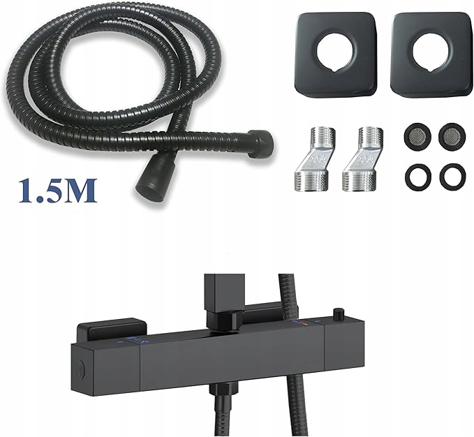 Термостатический смеситель для душа с душевым гарнитуром - черный