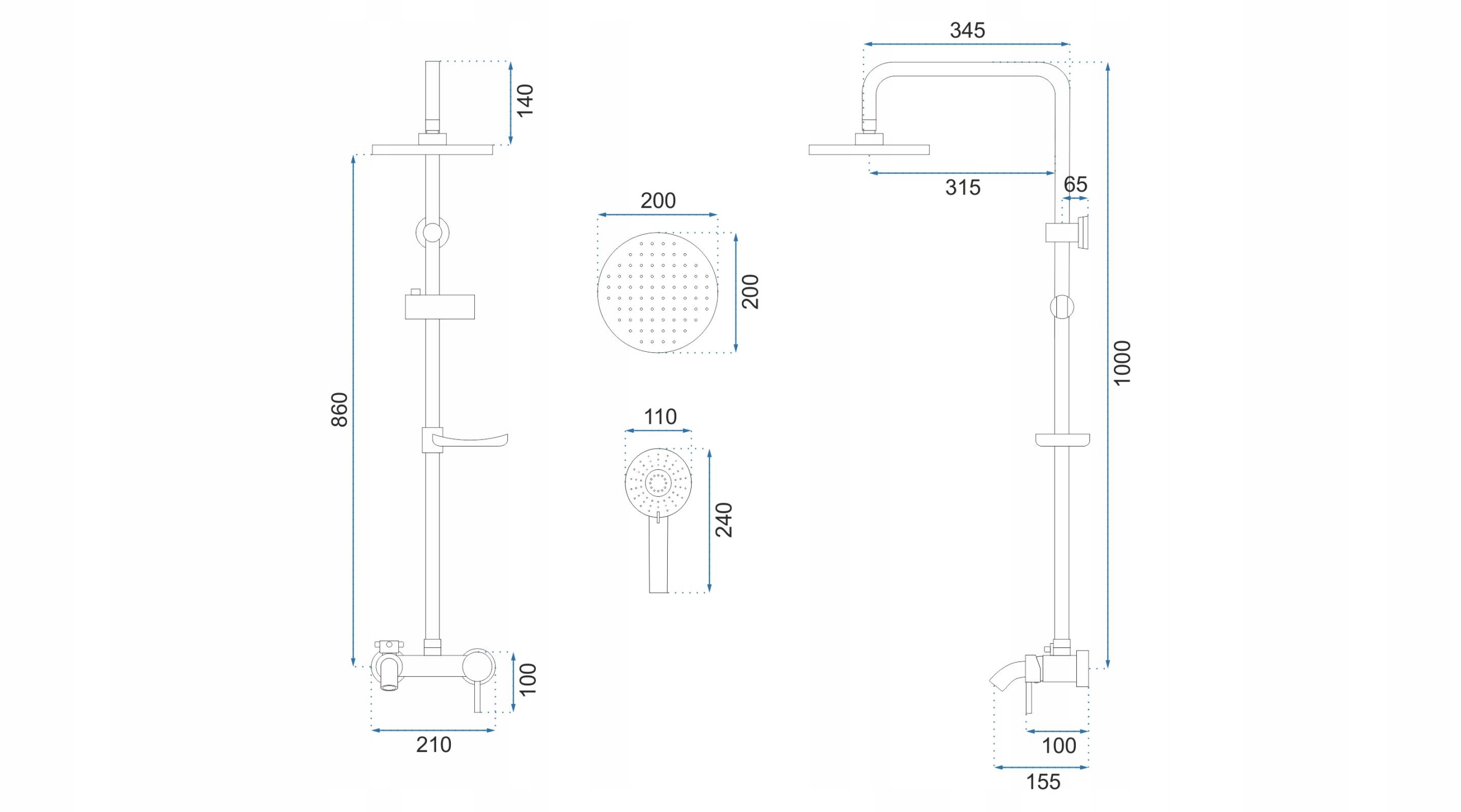 Душевой набор Дождевой душ + Шланг + Смеситель + Ручка Luis