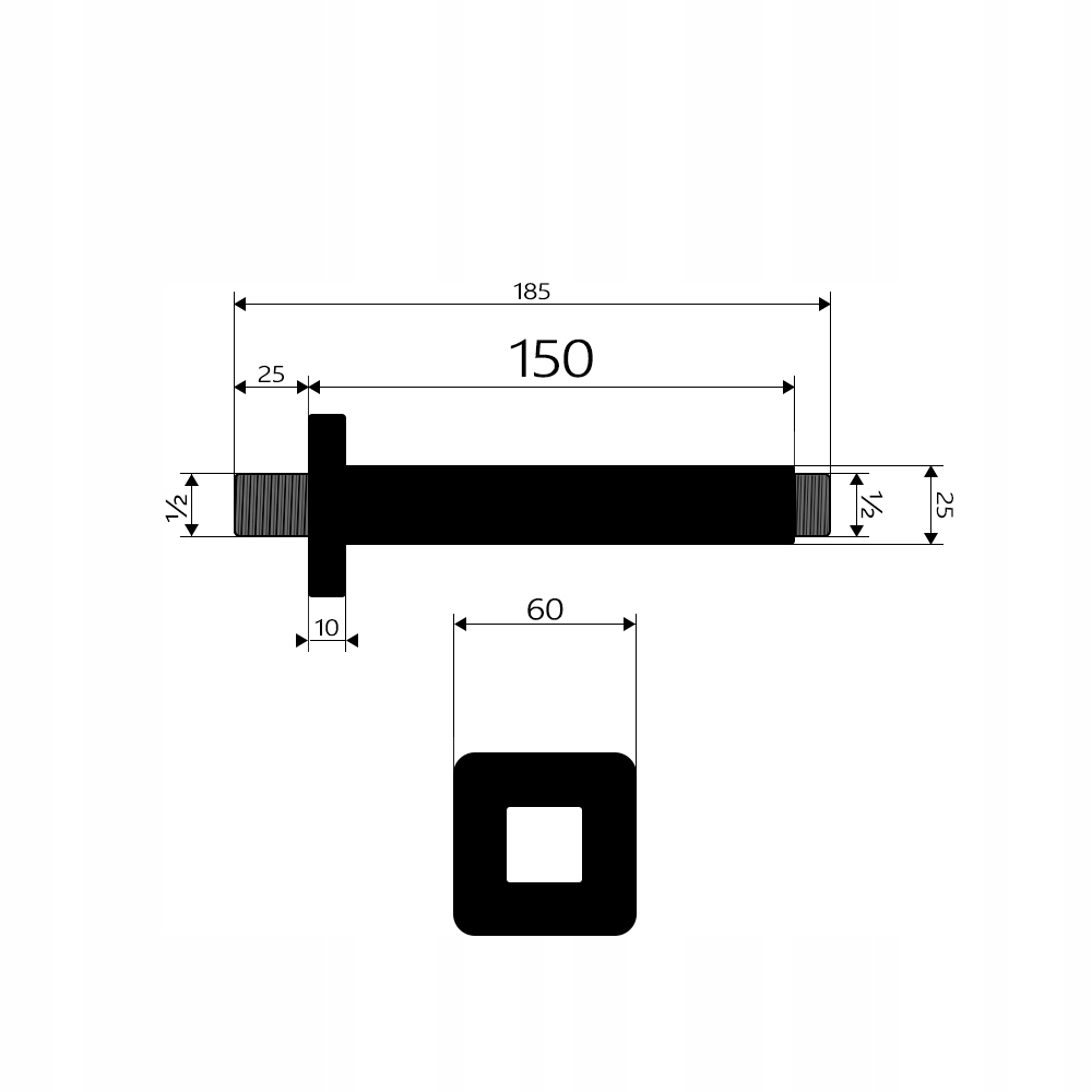Квадратный кронштейн душевой лейки из латуни с порошковым покрытием черного матового цвета позволяет крепить душевую лейку к потолку. Длина рычага 15 см, внешняя резьба 1/2 дюйма.