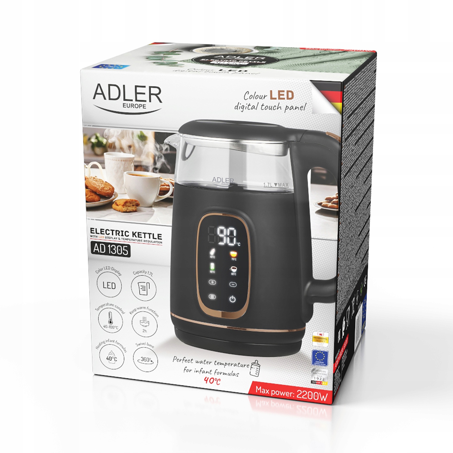 adler ad 1305 - современный электрический чайник, созданный для любителей чая и кофе. Благодаря точному контролю температуры и функции поддержания тепла, у вас всегда будет вода с идеальной температурой.