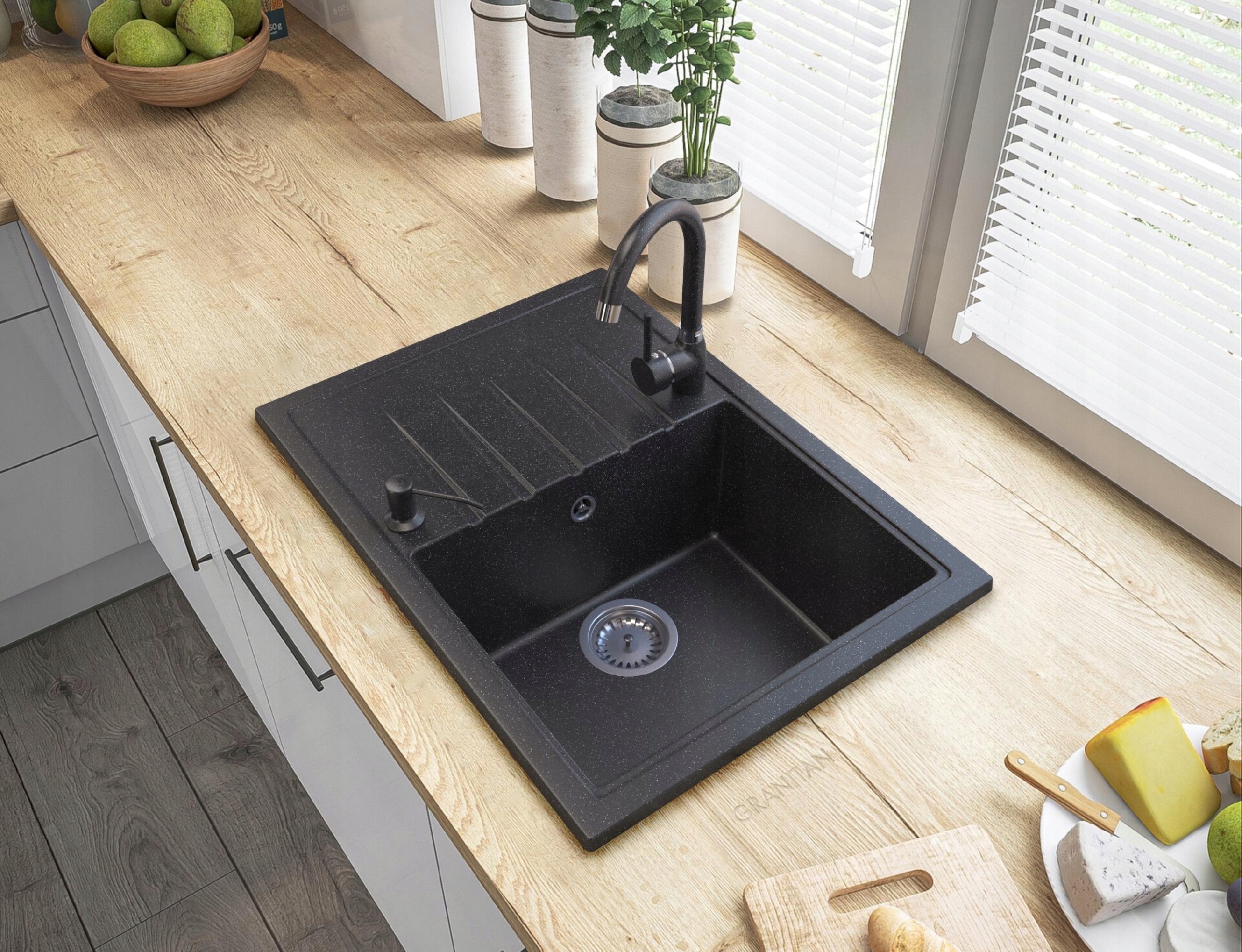 ЧЕРНЫЙ ГРАНИТ ЖИДКОГО МЫЛА КУХНЯ РАКОВИНА ДИСПЕНСЕР