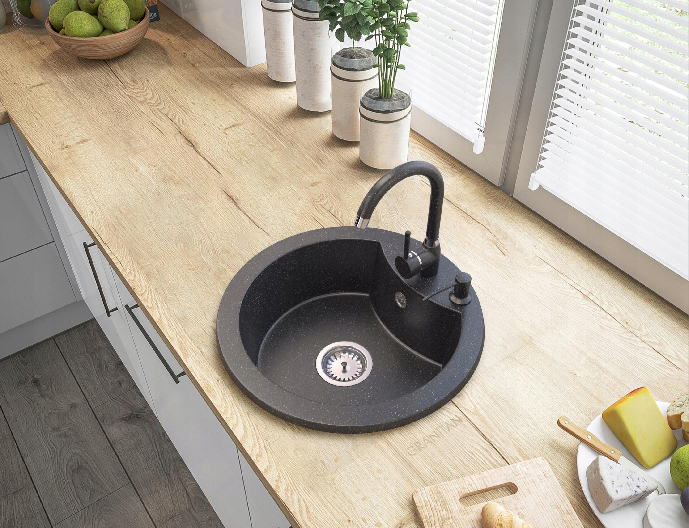 ЧЕРНЫЙ ГРАНИТ ЖИДКОГО МЫЛА КУХНЯ РАКОВИНА ДИСПЕНСЕР
