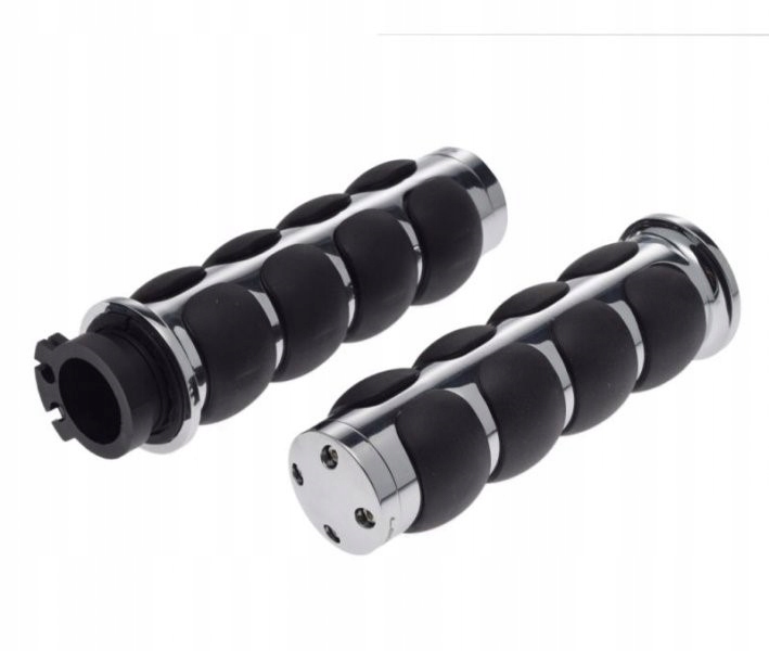 Дюймовые хромированные ручки с мягкой резиной для лучшего сцепления и гашения вибраций. В комплекте с валиком газ на 2 линии.