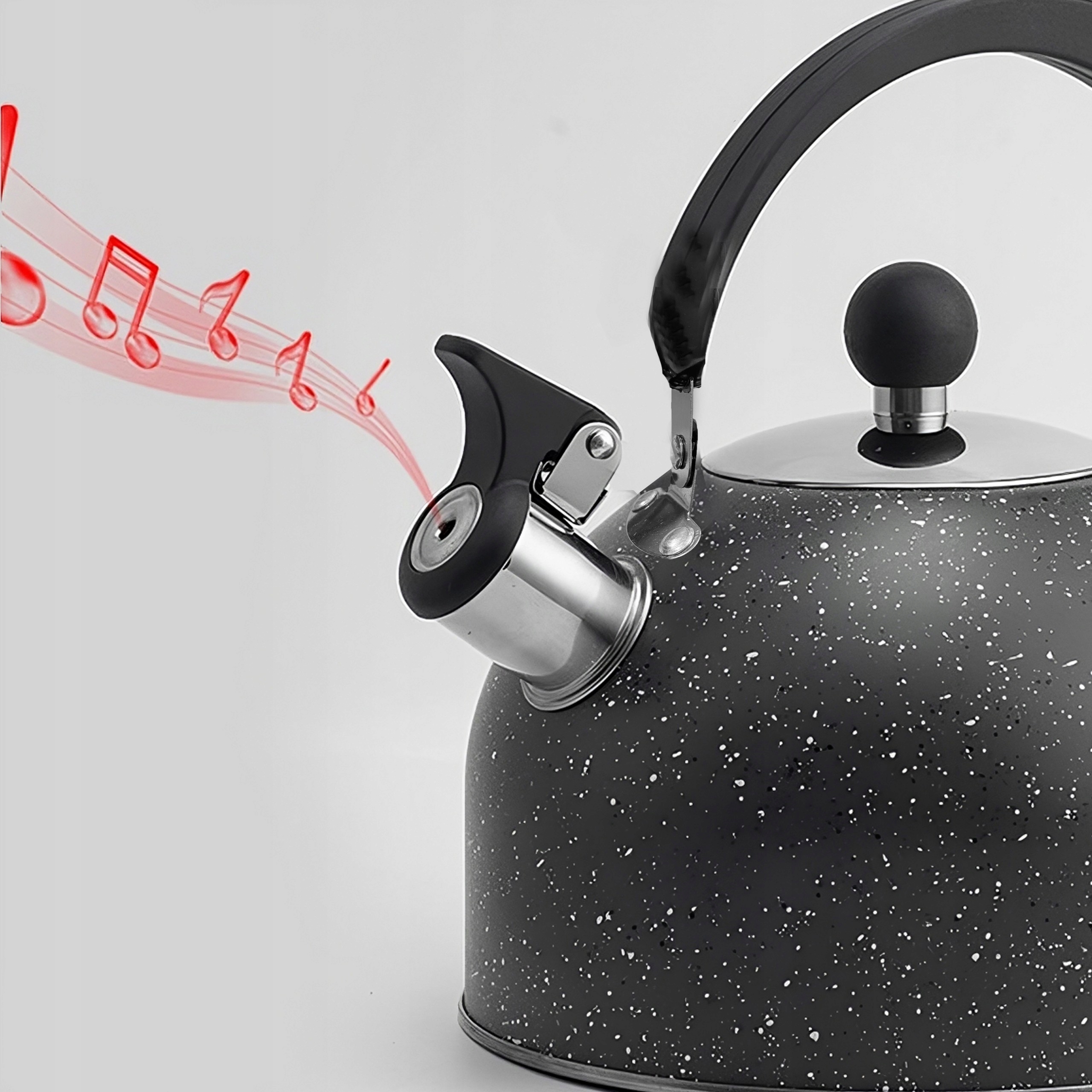 Стальный чайник черный индукционный газ с беспроводным свистком 2,5 л. Большой