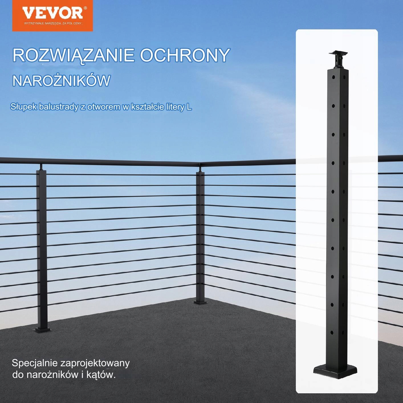 Эта стойка 91 см кабельной поручни с L -обработкой была специально разработана для углов. Он поставляется с просверленными 10 парами отверстий L -обработки, которые можно использовать для горизонтальных участков, а также в качестве конструкционных конечных столбов для горизонтальных угловых секций.