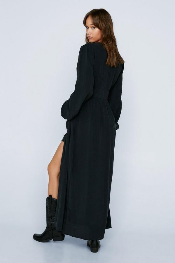 ЧЕРНЫЙ КЛАССИЧЕСКИЙ ЧЕХОЛ С ДЛИННЫМИ РУКАВАМИ, ПУГОВИЦАМИ, V-ОБРАЗНЫМ ВЫРЕЗОМ NASTY GAL 32