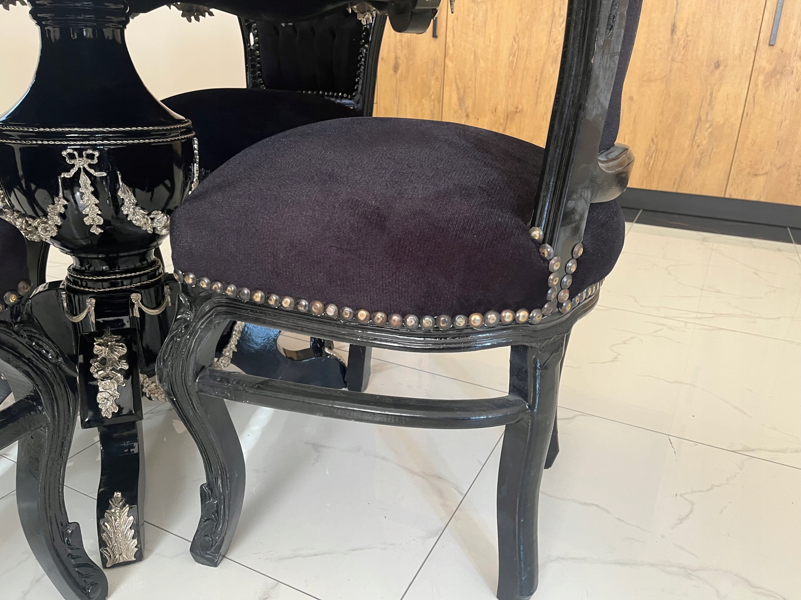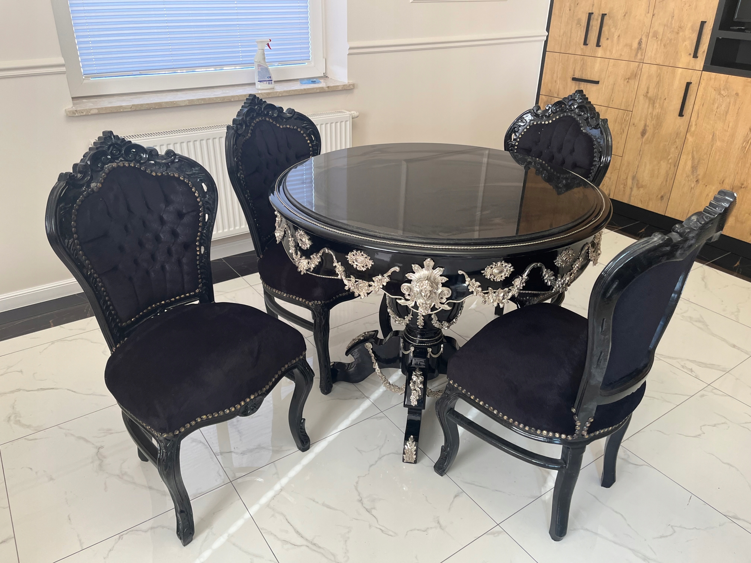 ЧОРНИЙ КОМПЛЕКТ стіл + стільці срібло фурнітура