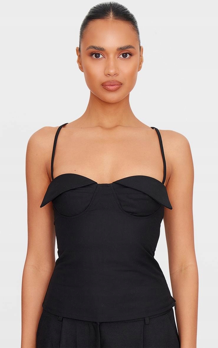 ЧЕРНЫЙ ПРИСТРАИВАЕМЫЙ КОРСЕТНЫЙ ТОП С РЕМЕНЯМИ PRETTYLITTLETHING 38